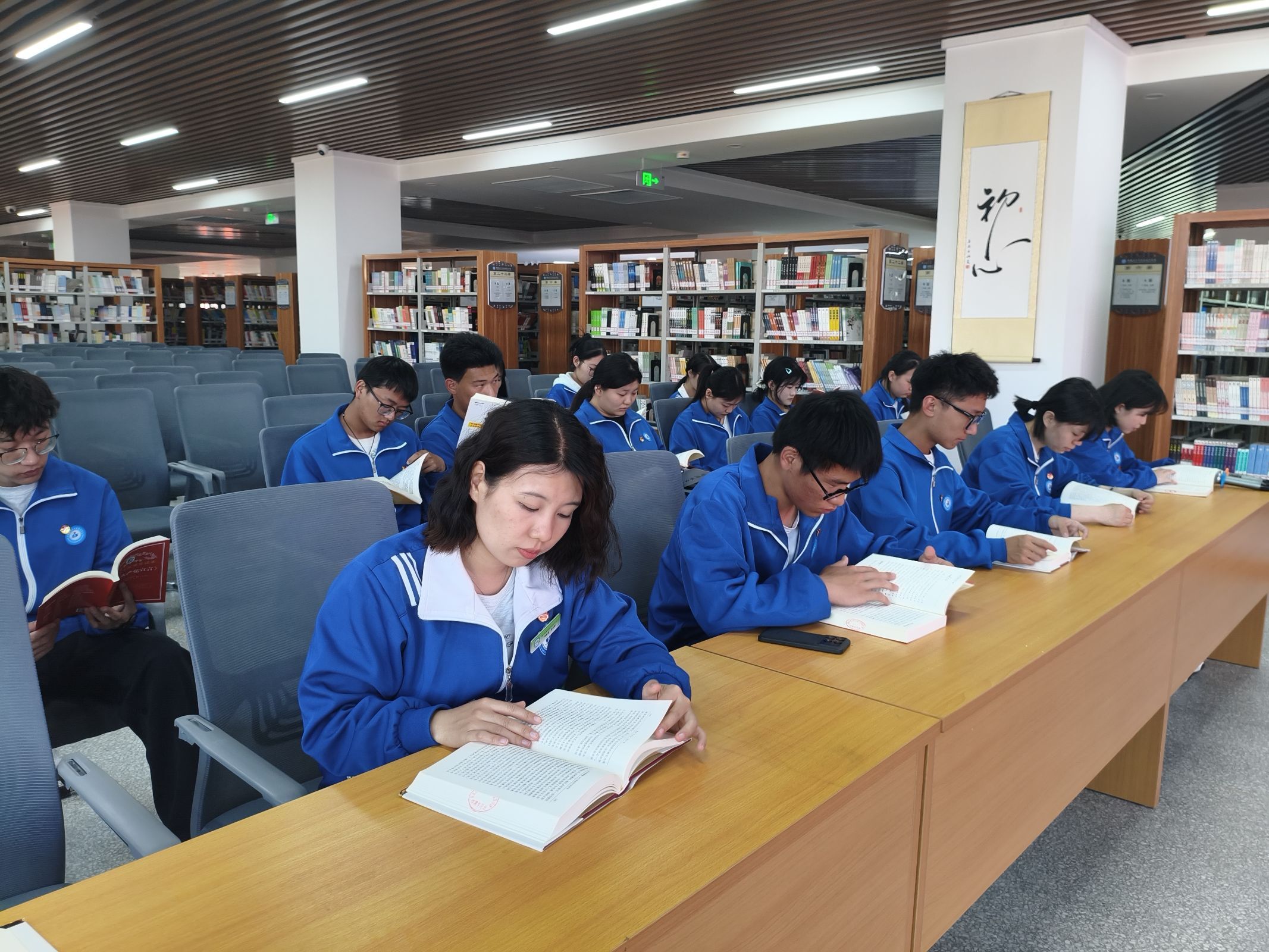 活动当天,学生们在图书馆红色经典专区沉浸式阅读《习近平的七年知青岁月》《红岩》《青春之歌》等书籍。书页翻动间,革命先辈的奋斗故事跃然眼前,青年毛泽东“问苍茫大地,谁主沉浮”的豪情壮志、周恩来“为中华之崛起而读书”的铿锵誓言,成为学生们争相摘抄的经典语录。在分享环节,团员赵阳朗读了《红星照耀中国》中描写红军战士坚韧品格的段落,动情表示:“这些文字让我深刻体会到信仰的力量。作为新时代青年,我们更应脚踏实地,扛起时代重任。”现场还通过“红色经典接龙”“青年说信仰”等互动环节,让革命精神在交流中焕发新的生机。学生纷纷表示,将以此次活动为起点,持续深入学习党的创新理论,用实际行动践行“请党放心,强国有我”的青春誓言。