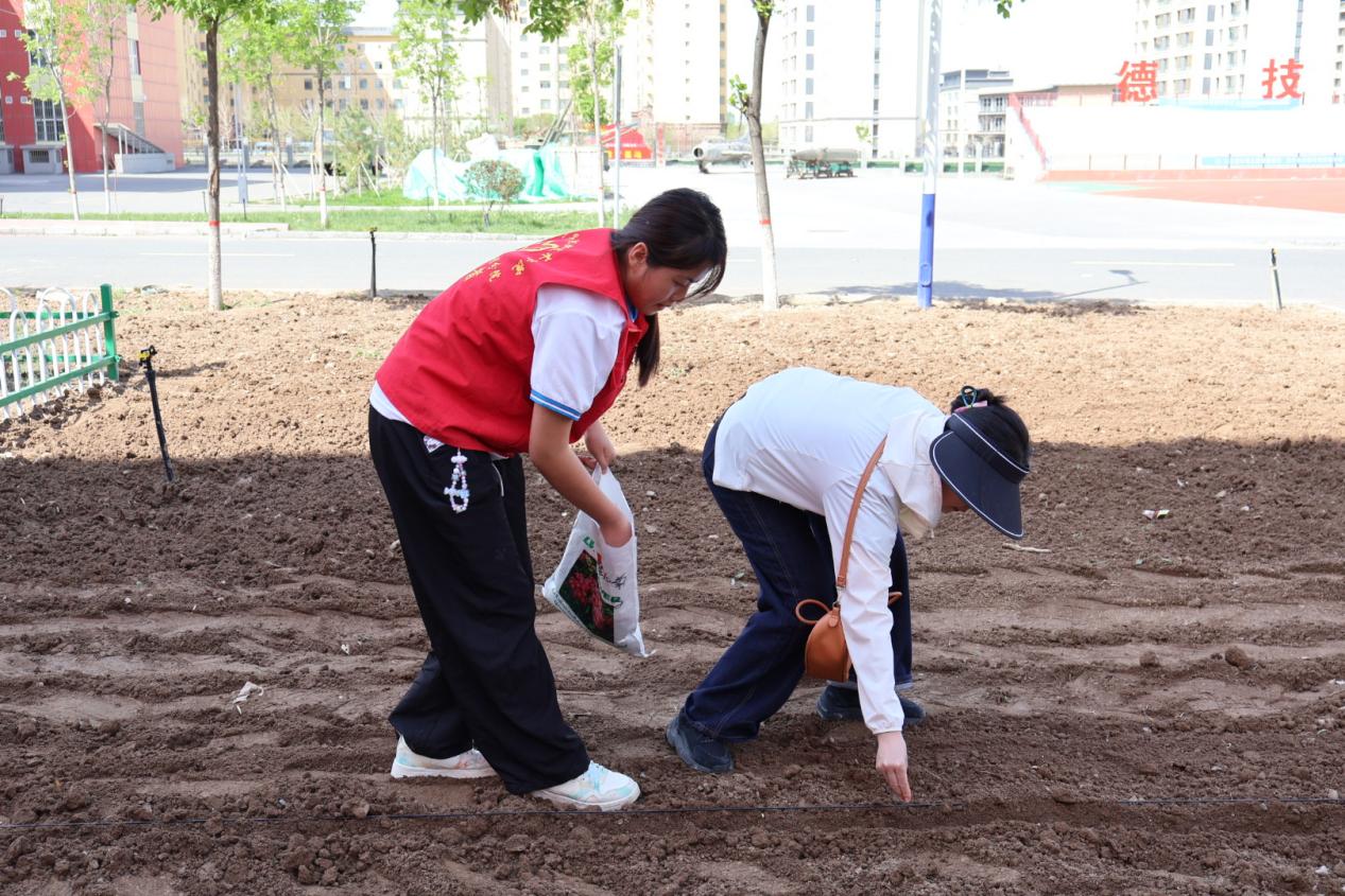 实践现场,同学们挥汗如雨,手握锄头、铁锹,依次完成了播前整地、作物播种、滴灌带铺设、喷灌设备调试等操作环节。在现代农业教研室教师的悉心指导下,同学们不仅复现了课堂上学习过的园艺作物种植技术、田间试验法与观赏植物栽培知识,更在实践难题中提升了解决问题的能力。现代农业232班学生代表在交流中表示,作为涉农专业的学生,我们更应该练强本领,将知识扎根土地,在服务‘三农’和乡村振兴中实现自身价值。水利建筑工程学院党总支书记韩东鼓励学生珍惜实践学习机会,不断提升自己的专业实践能力和理论知识水平,用青春担当诠释技能报国初心。