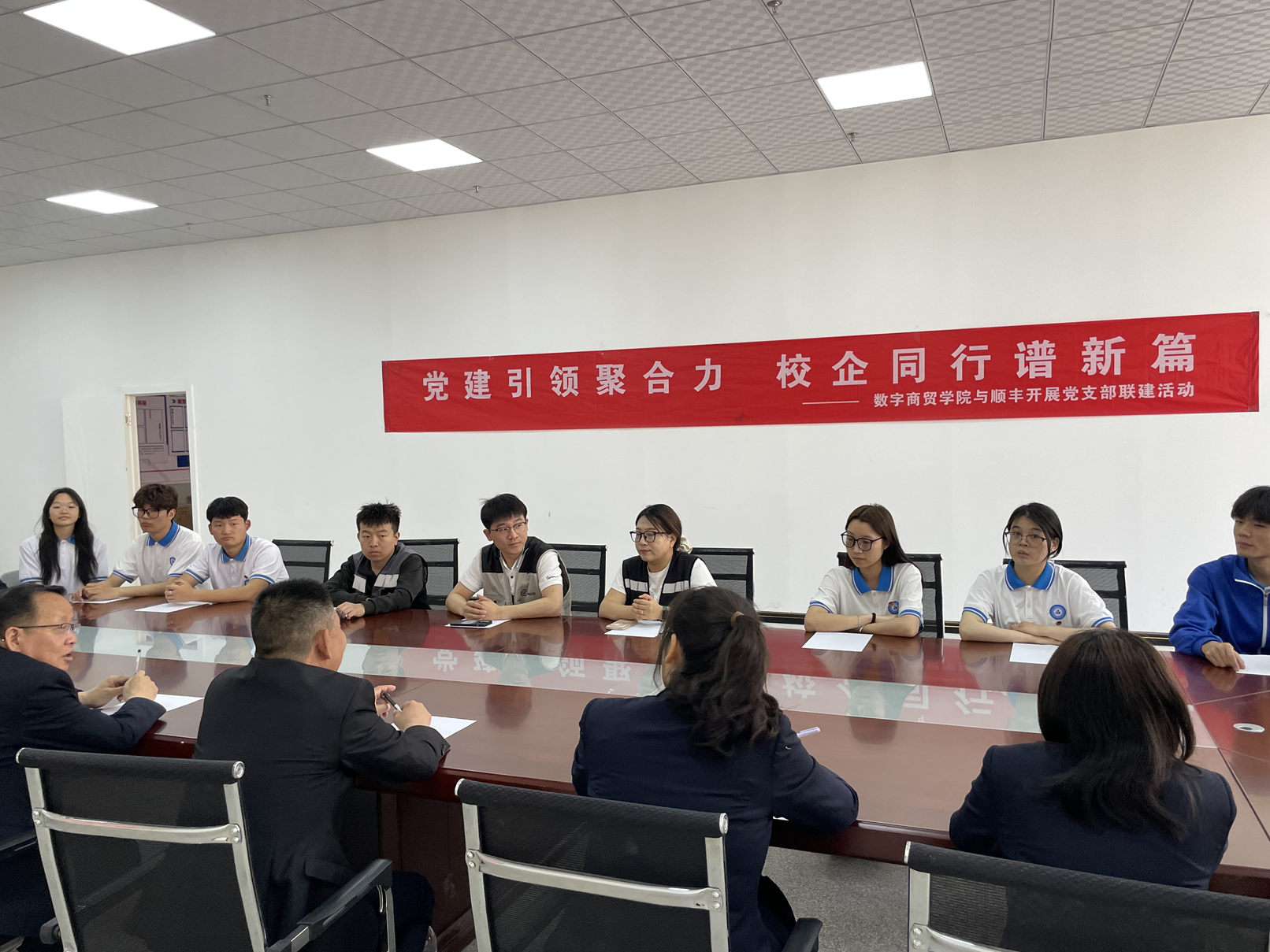(刘群麾 陈帅 报道)为进一步深化产教融合、推动校企协同发展,数字商贸学院与顺丰速运石河子分公司联合开展“党建引领聚合力 校企同行谱新篇”党支部联建活动,数字商贸学院领导及师生代表参加活动。
