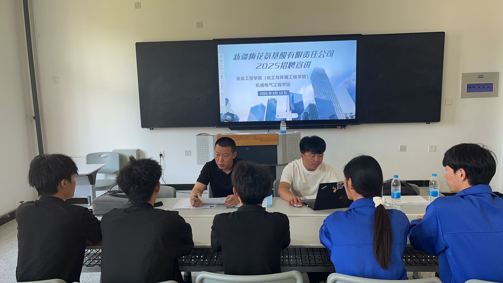 (黄鹏兵 报道)2025年5月12日下午,食品工程学院(化工与环境工程学院)与机械电气工程学院携手新疆梅花氨基酸有限责任公司,在宏智楼2楼阶梯教室举办专场招聘宣讲会,250 余名食品、化工、机电等专业师生参会,精准对接企业人才需求。
