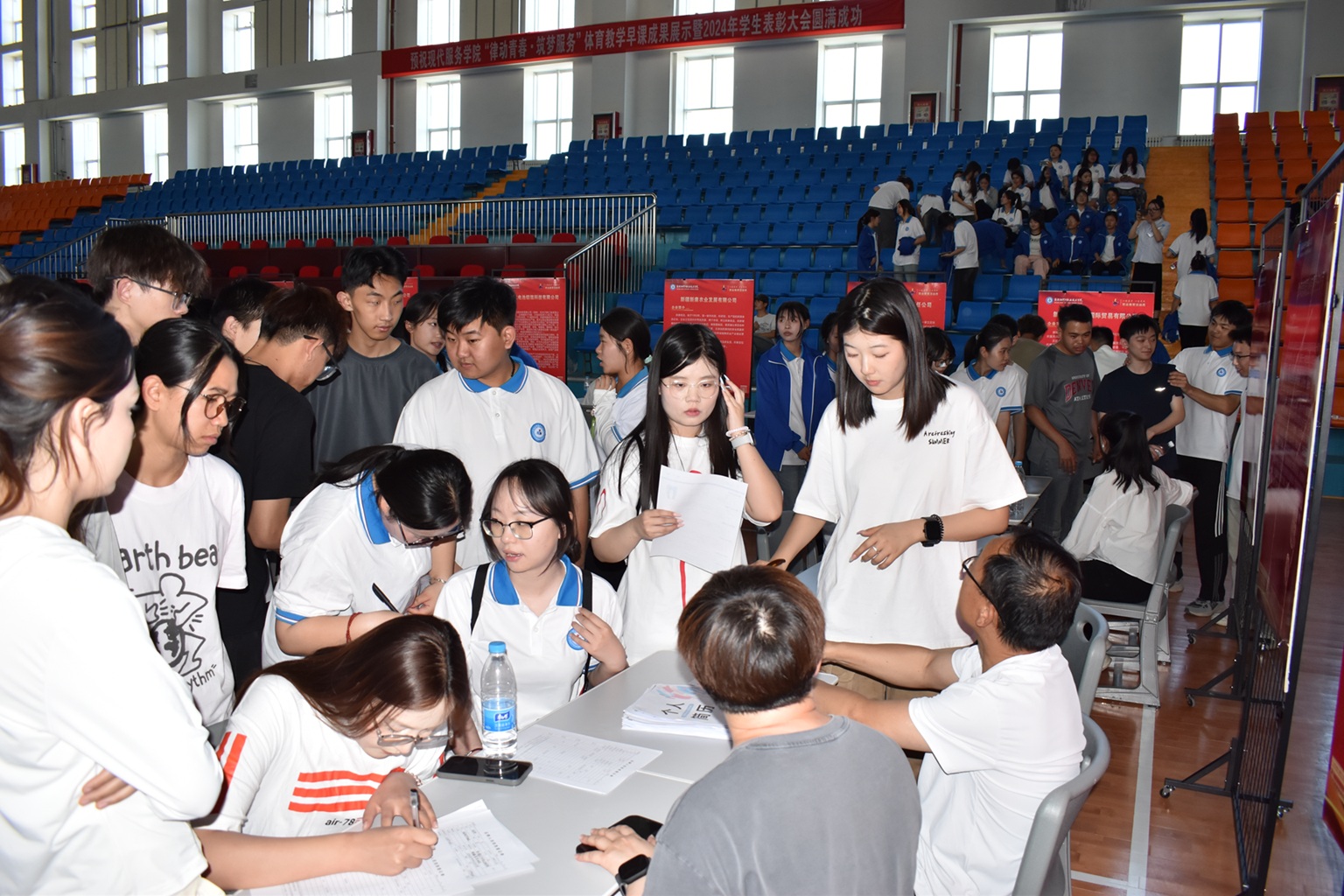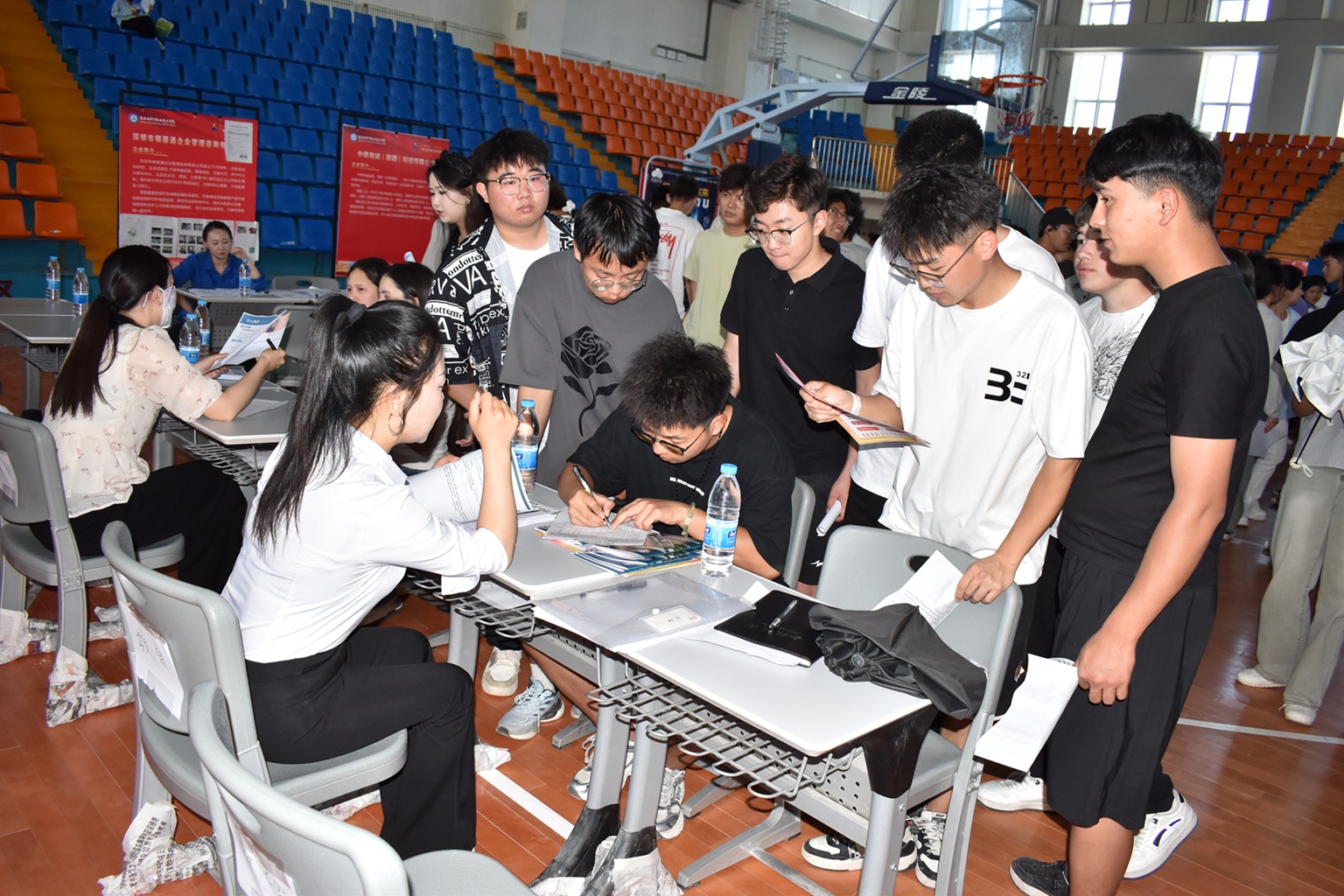 (王需 徐千然 报道)为促进毕业生高质量就业,满足用人单位招才引智需求,5月14日,Beat365中文官方网站在2025年职业教育活动周期间,成功构建起“政校行企”四方联动的产教融合新场景,开展“企业学生面对面”精准对接双选会,在二期操场和体育馆形成人才供需“强磁场”。现场3000余名相关专业的学生参加招聘,与企业达成意向的学生突破1000人次,专业对口率高达92%,为区域产业升级注入新生力量。