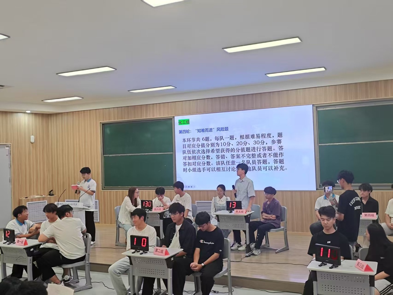 本次竞赛经过前期初赛、复赛的层层选拔,来自化工专业和食品专业的12支队伍脱颖而出。决赛现场气氛热烈,参赛队伍展现出了扎实的理论功底与灵活的应变能力。必答题环节,面对“食品添加剂分类标准”“化工反应热力学计算”等专业提问,各队选手对答如流,彰显扎实基础;抢答题环节,选手们踊跃抢答,比分交替攀升;风险题环节,面对“结合“双碳”目标,分析“食品加工中的节能技术路径”等开放性题目,选手们沉着分析、分层论述,专业教师对选手们的精彩表现表示肯定。经过激烈比拼,食品科学与工程231班与环境监测232班凭借优异表现,荣获本次专业知识竞赛一等奖。李晓华书记勉励同学们说:“把课本里的知识转化为实践中的能力,努力成长为懂理论、会创新、能担当的高素质应用型人才。”