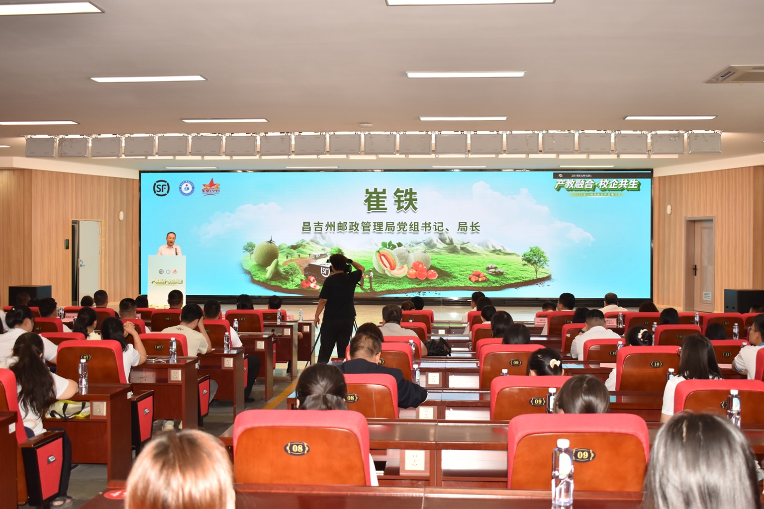 学院院长林炯,昌吉州邮政管理局党组书记、局长崔铁,新疆顺丰速运有限公司副总经理李守国,石河子城投集团党委委员、副总经理赵卫兵致辞,对学校产教融合所取得的成果给予了高度肯定,共同展望了未来校企在人才培养、资源共建、实训深化等方面所具有的广阔前景。