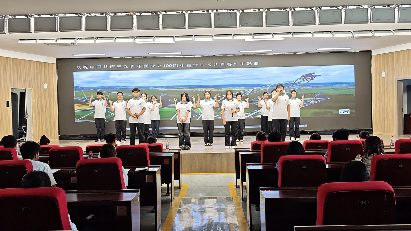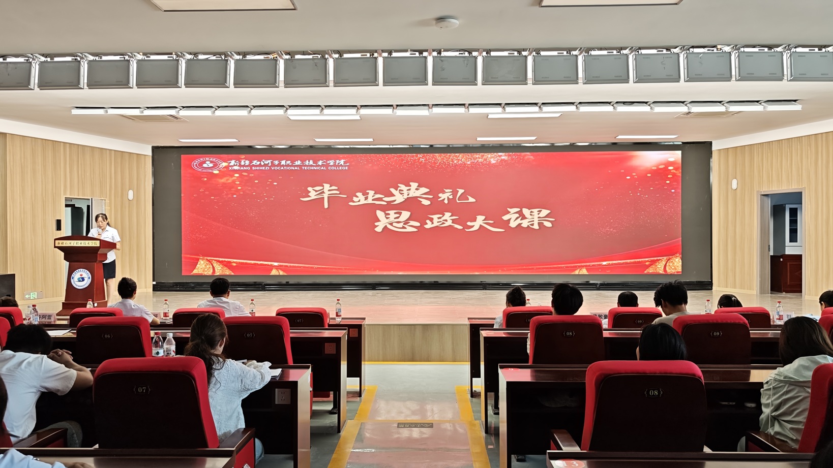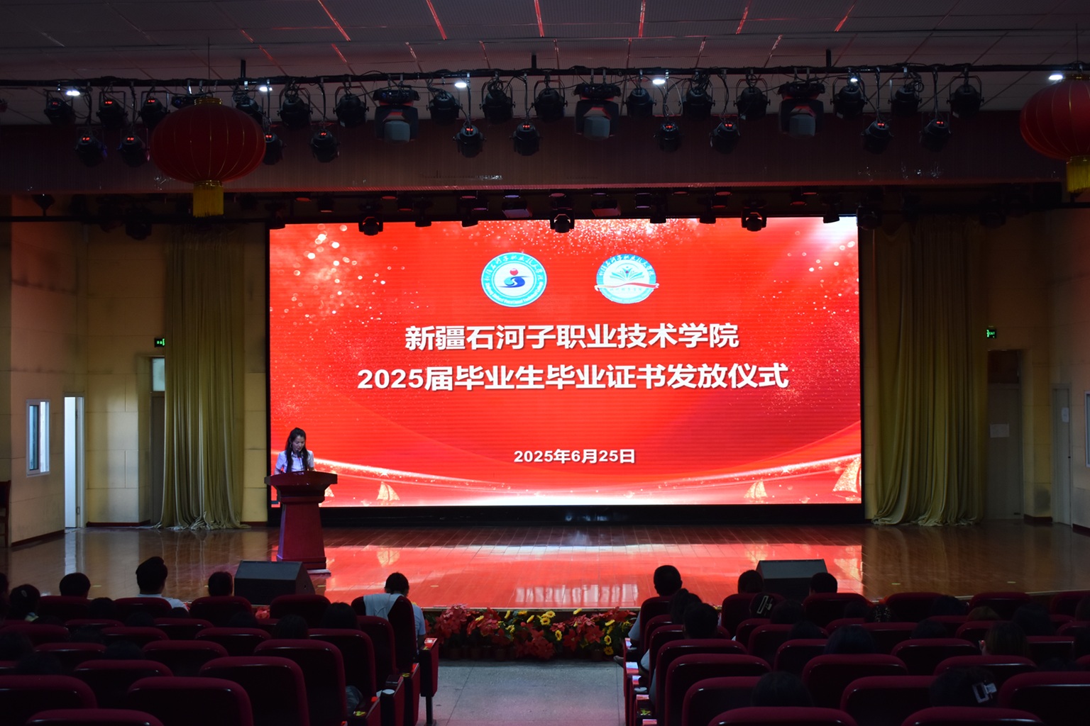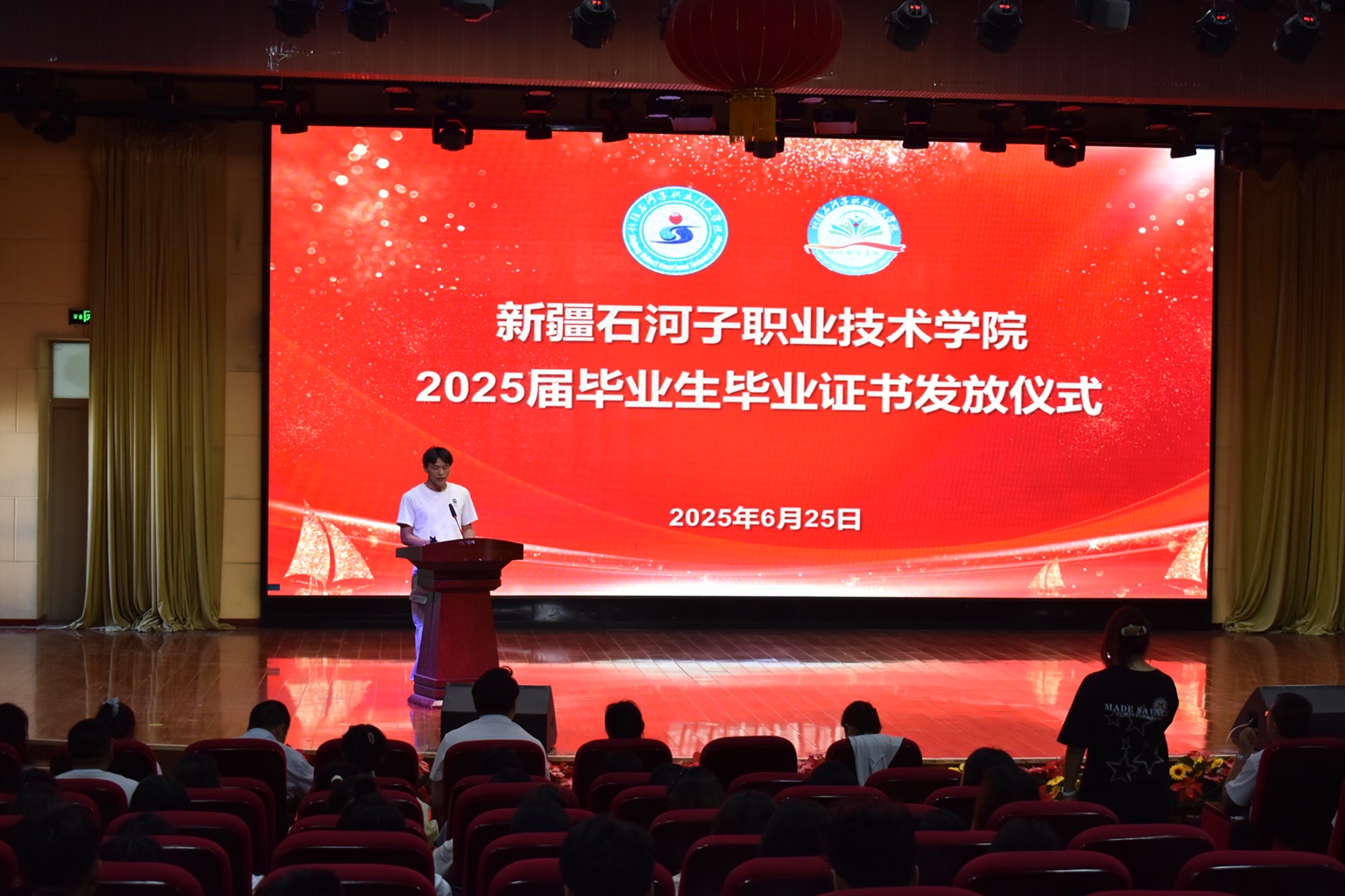 下午,2025年优秀校友、优秀毕业生分享会暨毕业典礼在宏智楼一楼阶梯教室举行。全体师生共同观看了学院原创舞台剧《大漠无悔》,从军垦先辈们建设家乡的峥嵘岁月中感悟奋进力量。在校学子精心编排的五四主题音诗画舞蹈《有我》精彩上演,以艺术形式展现了青年的朝气与力量,进一步激发了在场师生的民族自豪感与时代使命感。