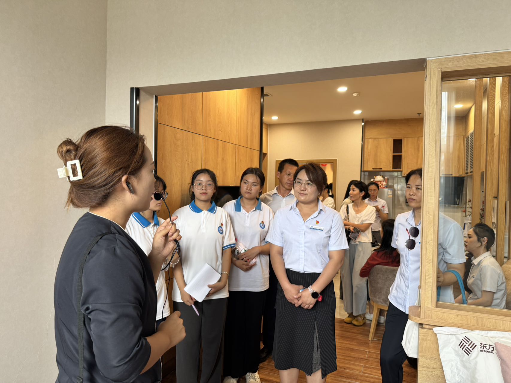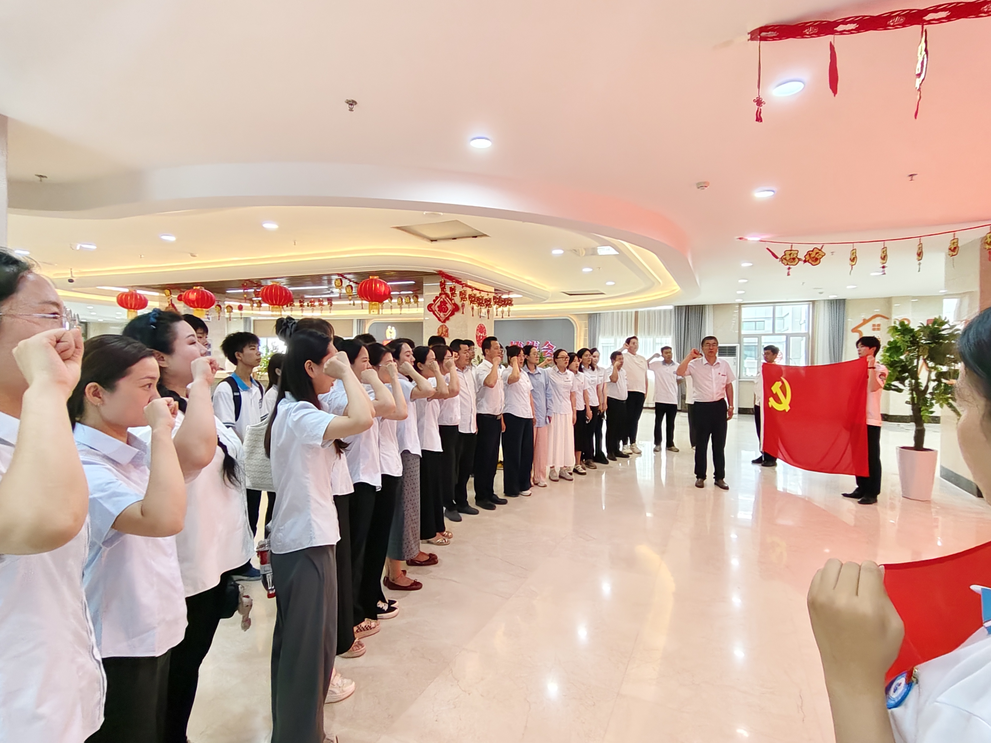 (王似雄 报道)为庆祝中国共产党成立104周年,2025年6月26日下午,现代服务学院组织全院党员教师赴天富养老产业园,开展“党旗映天山”主题党日活动。活动通过沉浸式参观学习、重温入党誓词、新老党员传承等丰富环节,激励全体党员以昂扬姿态践行初心使命,让红色基因在实践中焕发新的活力。