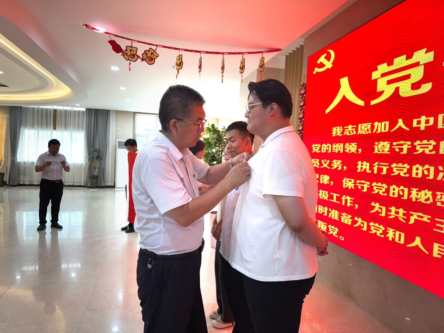 党员们满怀热忱地踏入天富养老产业园,在工作人员专业细致地讲解下,深入探访园区内别具特色的住宅式养老区域。党员们围坐在老人身边,聆听老人们深情讲述建设新疆的峥嵘岁月,进一步领悟兵团精神的内涵。全体党员在现代服务学院党支部书记俞峰的带领下,整齐列队于产业园区大厅,面向鲜红党旗,高举右拳,重温入党誓词,铿锵有力的誓言在大厅内回荡,彰显着全体党员对党的忠诚和为党的事业奋斗终身的坚定信念。薪火相传环节中,老党员为新党员郑重佩戴党徽。预备党员教师张敏在发言中表示,自己将以党员模范为榜样,以实际行动践行入党誓词,为党和人民的事业贡献自己的力量。