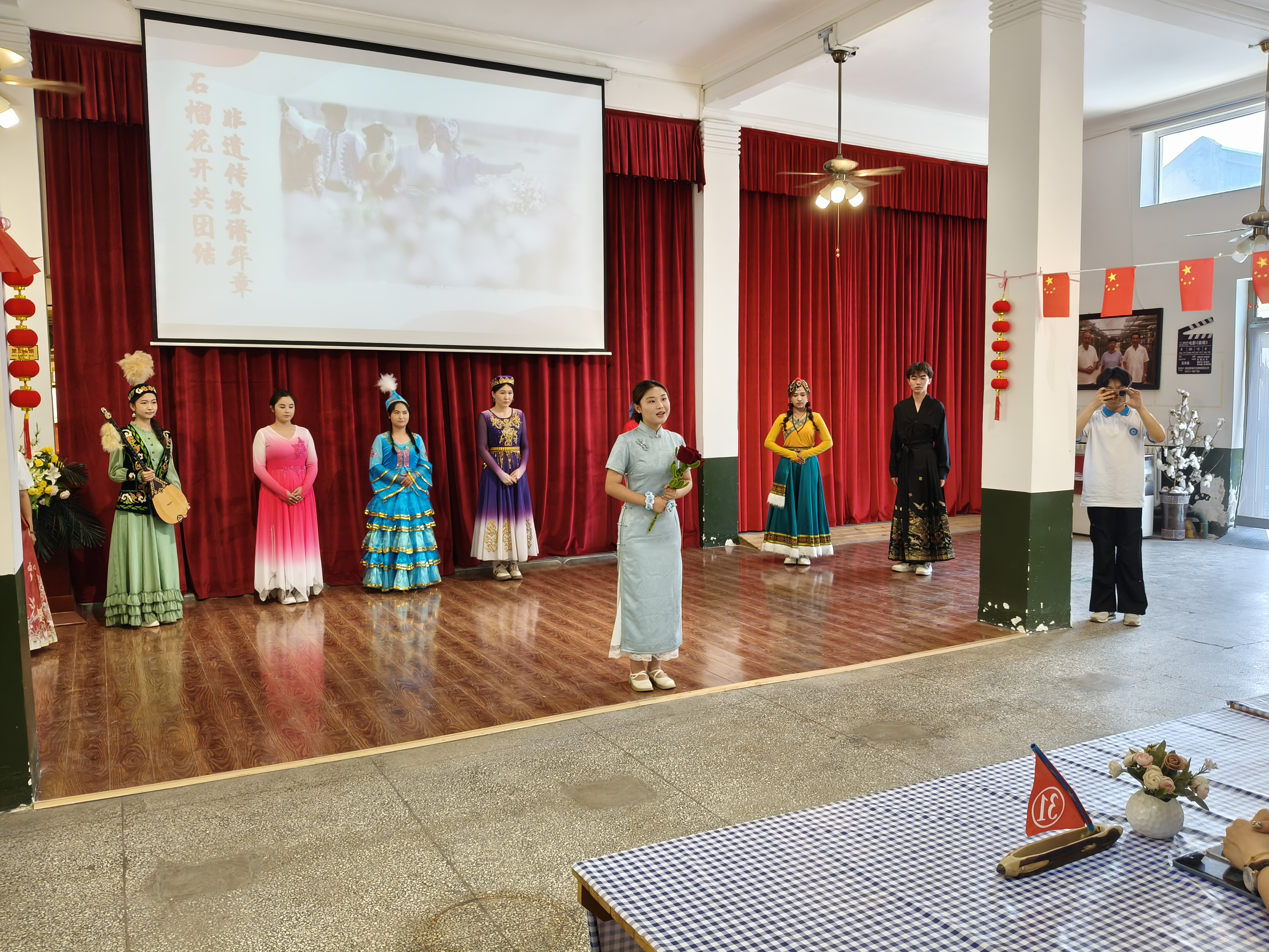 武亮副院长强调,党员师生要从百年党史中汲取力量,将红色基因融入教学与成长,以实际行动诠释教育工作者的责任担当。舞台上,学生们以艺术为媒传递信仰:舞台剧《非遗传承谱华章,石榴花开共团结》,将非遗魅力与民族团结交融,演绎文化传承的温度;情景剧《耕读传家躬行久》,回溯耕读传家的质朴坚守,诠释艰苦奋斗的精神密码;舞台剧《大漠无悔》,以无畏担当展现兵团儿女扎根边疆、奉献家国的情怀。青春身影与红色故事交织,让党史学习教育“活”起来,赢得现场阵阵掌声。