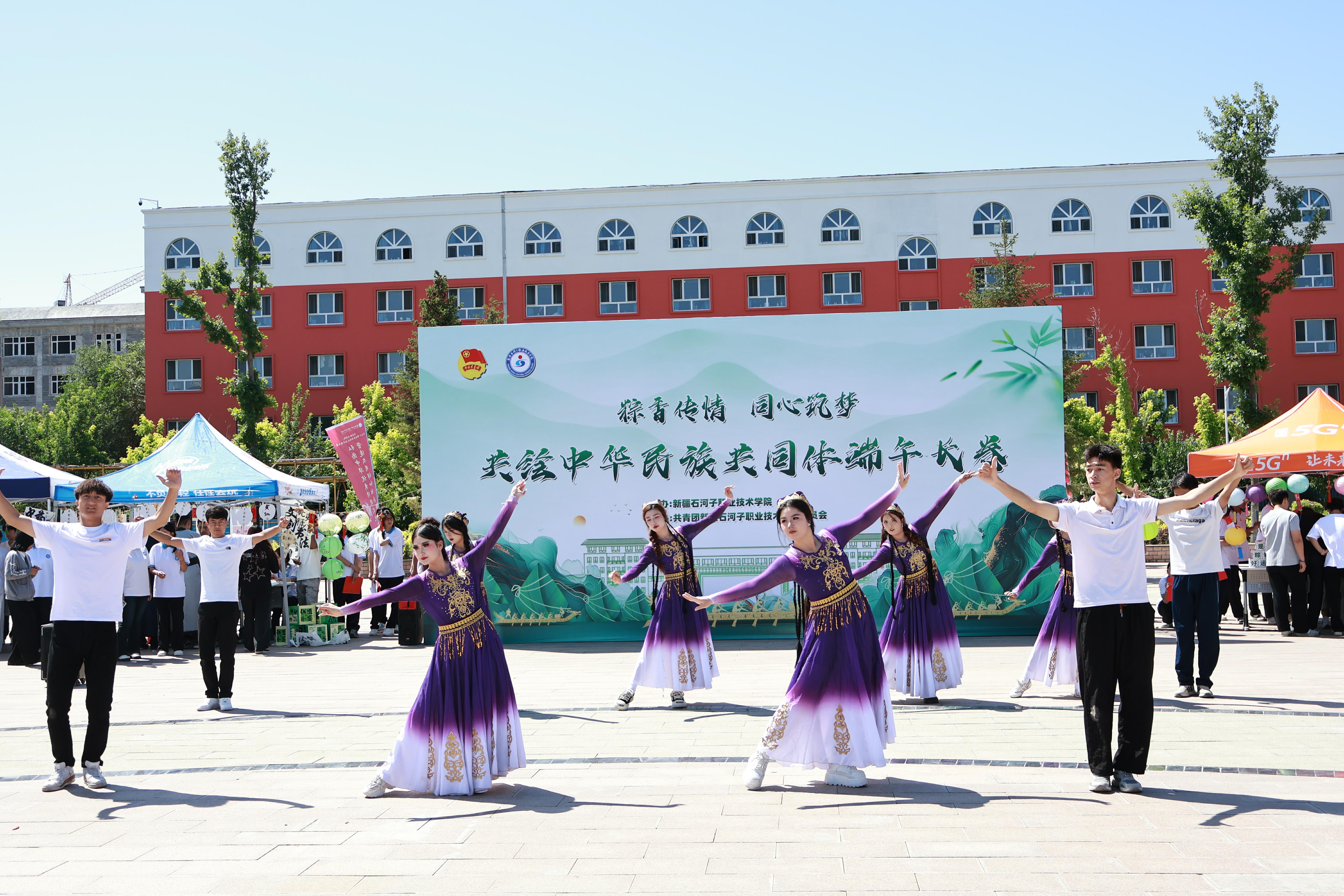 2025年5月30日上午,Beat365中文官方网站团委在学术报告厅门前小广场举办“粽香传情 同心筑梦——共绘中华民族共同体端午长卷”主题活动,兵团教育局党组成员、副局长赵首辰,第八师党委常委、副政委、统战部部长宋德忠,兵团教育局职业教育与成人教育处副处长李媛媛,第八师石河子市教育局党委书记、局长黄博,学校党委书记史文革、院长林炯,兵团部局领导、兵团各职业院校领导、师市部局领导及各职业院校的1000余名师生齐聚一堂,以文化交融铸牢中华民族共同体意识。活动现场,墨攻书画社、手工艺社等多个社团带来精彩的成果展演,古典舞表演、非遗技艺展示轮番上演,尽显中华优秀传统文化魅力。