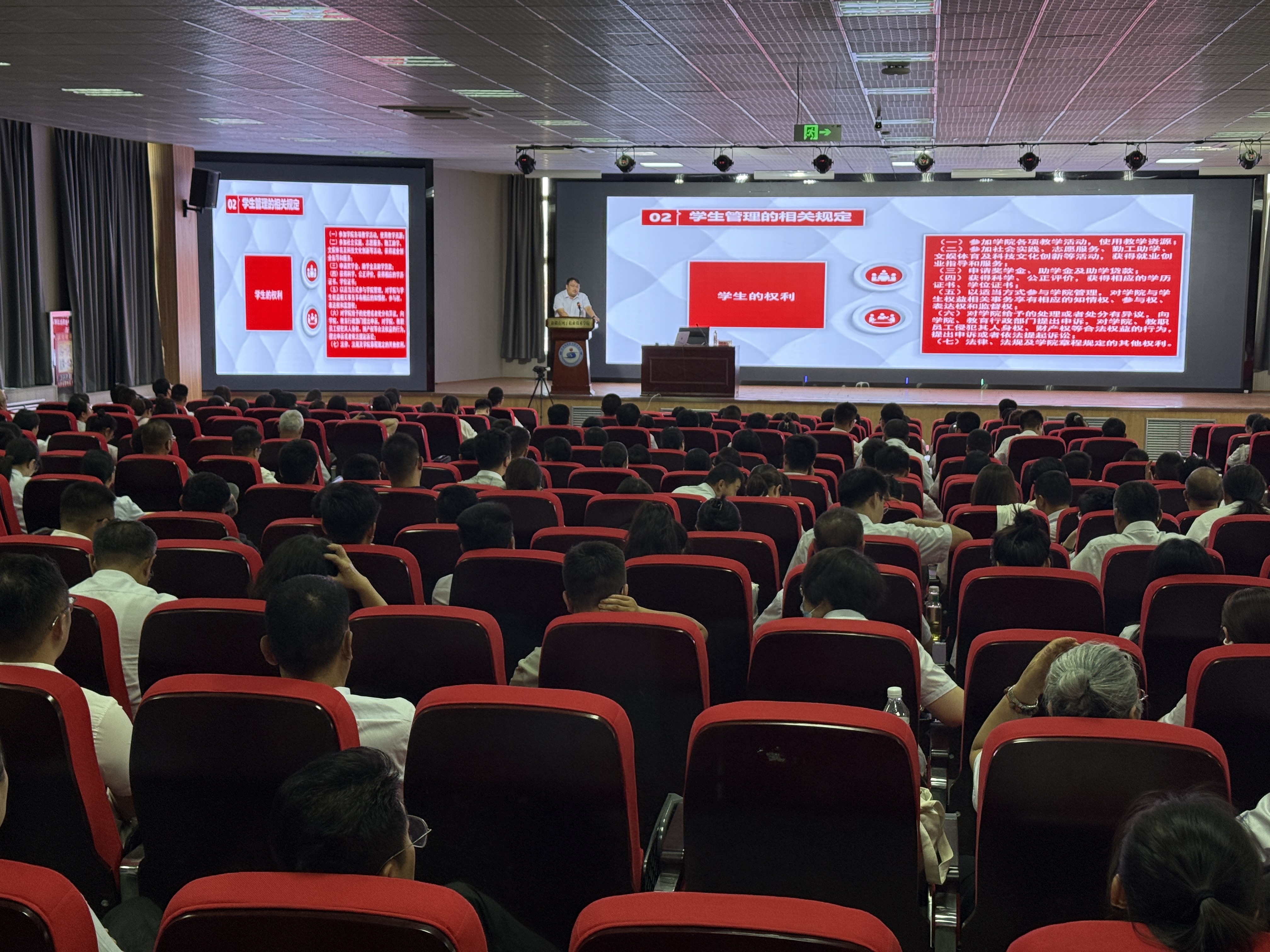 此次培训紧密结合学院实际情况,分三阶段有序开展,分别为全体教师集中培训、实验实训室仪器设备使用培训及进企业实践。集中培训紧扣教育教学实际需求,内容精准聚焦核心能力建设,设置了“师德师风培训”“强化网络安全意识筑牢网络安全防线”“公开课展示:《直播电商——数字人直播》”“学生管理”“校园法治安全培训”“职业本科的管理转型”“人工智能在教育教学中的应用”等专题。培训内容兼具前沿性与实用性,现场学习氛围十分浓厚。