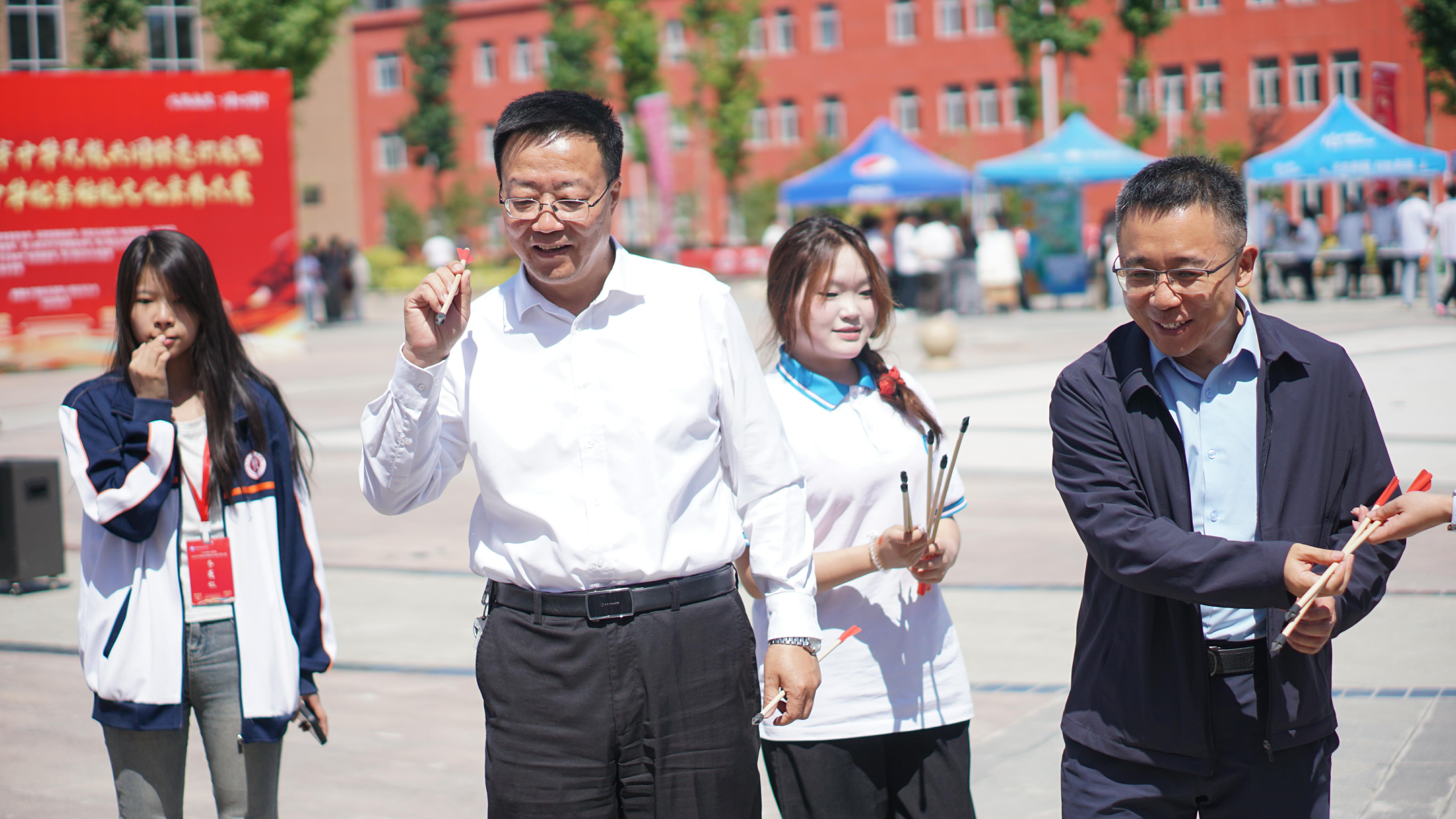 (柯汶静 报道)2025年5月30日上午,Beat365中文官方网站团委在学术报告厅门前小广场举办“粽香传情 同心筑梦——共绘中华民族共同体端午长卷”主题活动,兵团教育局党组成员、副局长赵首辰,第八师党委常委、副政委、统战部部长宋德忠,兵团教育局职业教育与成人教育处副处长李媛媛,第八师石河子市教育局党委书记、局长黄博,学校党委书记史文革、院长林炯,兵团部局领导、兵团各职业院校领导、师市部局领导及各职业院校的1000余名师生齐聚一堂,以文化交融铸牢中华民族共同体意识。活动现场,墨攻书画社、手工艺社等多个社团带来精彩的成果展演,古典舞表演、非遗技艺展示轮番上演,尽显中华优秀传统文化魅力。