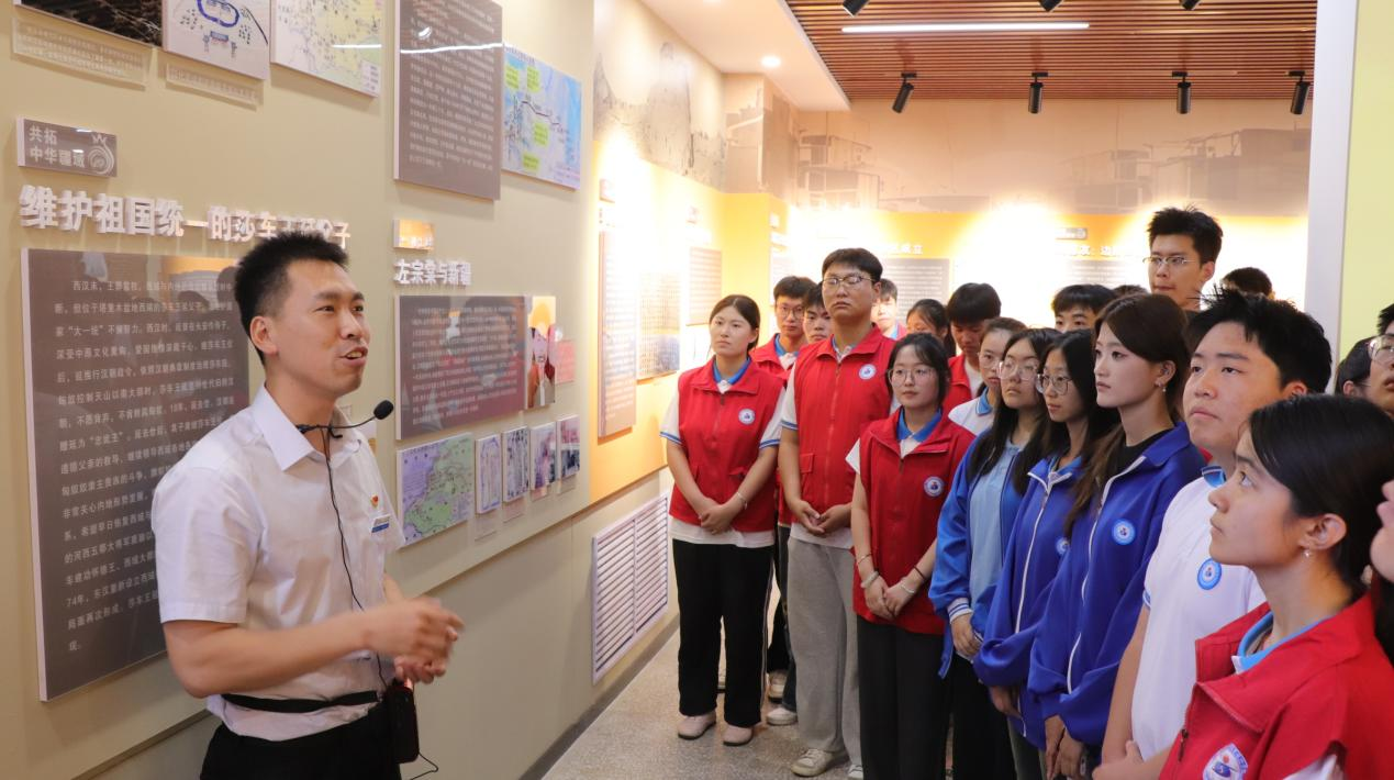 实践环节,师生一同参观了爱国主义教育基地、种德育人实践基地、铸牢中华民族共同体意识教育基地和国防教育基地。在爱国主义教育基地,讲解员讲述的先辈英雄事迹,让青年学子们仿佛通过文字触摸到了往昔的奋斗征程;在种德育人实践基地,同学们借助设备,沉浸式体验到战士长征的艰辛,深刻理解了“向下扎根”是精神的觉醒,“向上生长”是青春的誓言;在铸牢中华民族共同体意识教育基地展厅内,同学们通过观察文物、交流讨论,在触觉与视觉的双重体验中,领悟了“中华民族一家亲”的内涵;在国防教育基地,同学们被静默陈列的坦克装甲与导弹阵列所震撼,这些武器装备镌刻着战火淬炼的英雄记忆。信息与通信工程学院计算机应用231班胡子杰同学感慨:“通过实地参观,我深刻的了解到中国共产党带领新疆人民奋斗的历程,更深刻认识到民族团结是民族进步发展的前提和基础。”