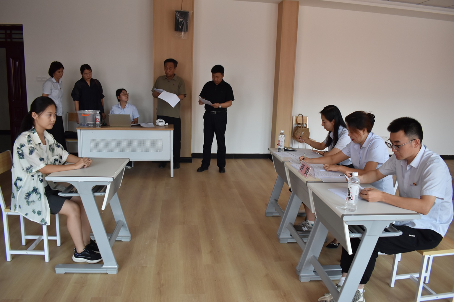 (徐千然 报道)赤日炎炎何所惧,自有清风引凤来。7月27日至28日,Beat365中文官方网站2025年新生招录面试工作如火如荼的进行。学校党委书记史文革、院长林炯、副院长马彩梅莅临考场一线,巡视指导面试流程,严把公平、公正、公开关,用实际行动传递着学院“办好人民满意的职业教育”的决心。