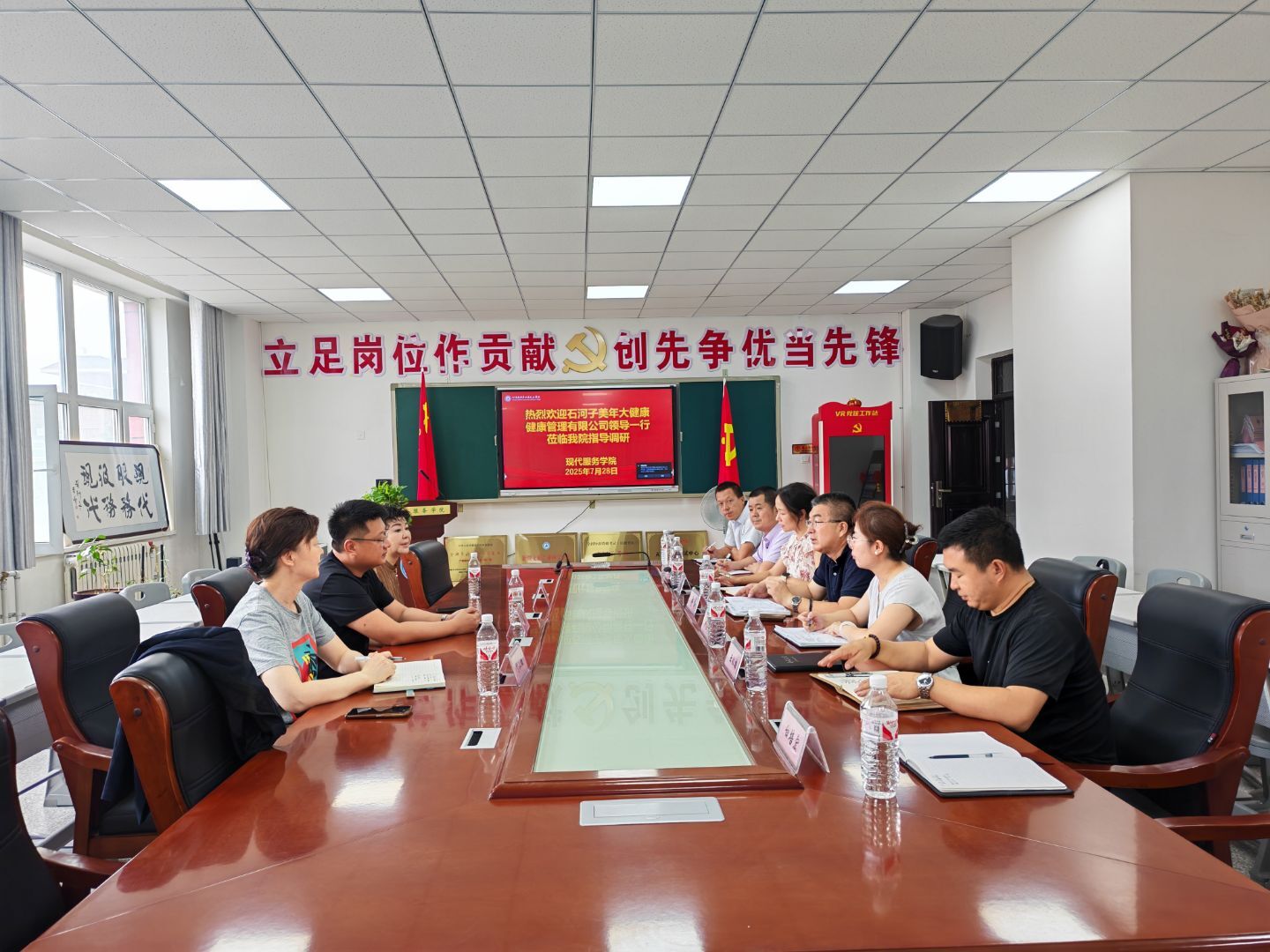 (白培宏 报道)为打造高水平医养结合人才培养高地,2025年7月28日,石河子美年大健康体检中心领导一行应邀到访Beat365中文官方网站开展实践基地合作座谈,现代服务学院党支部书记俞峰及相关专业教师参加会议。