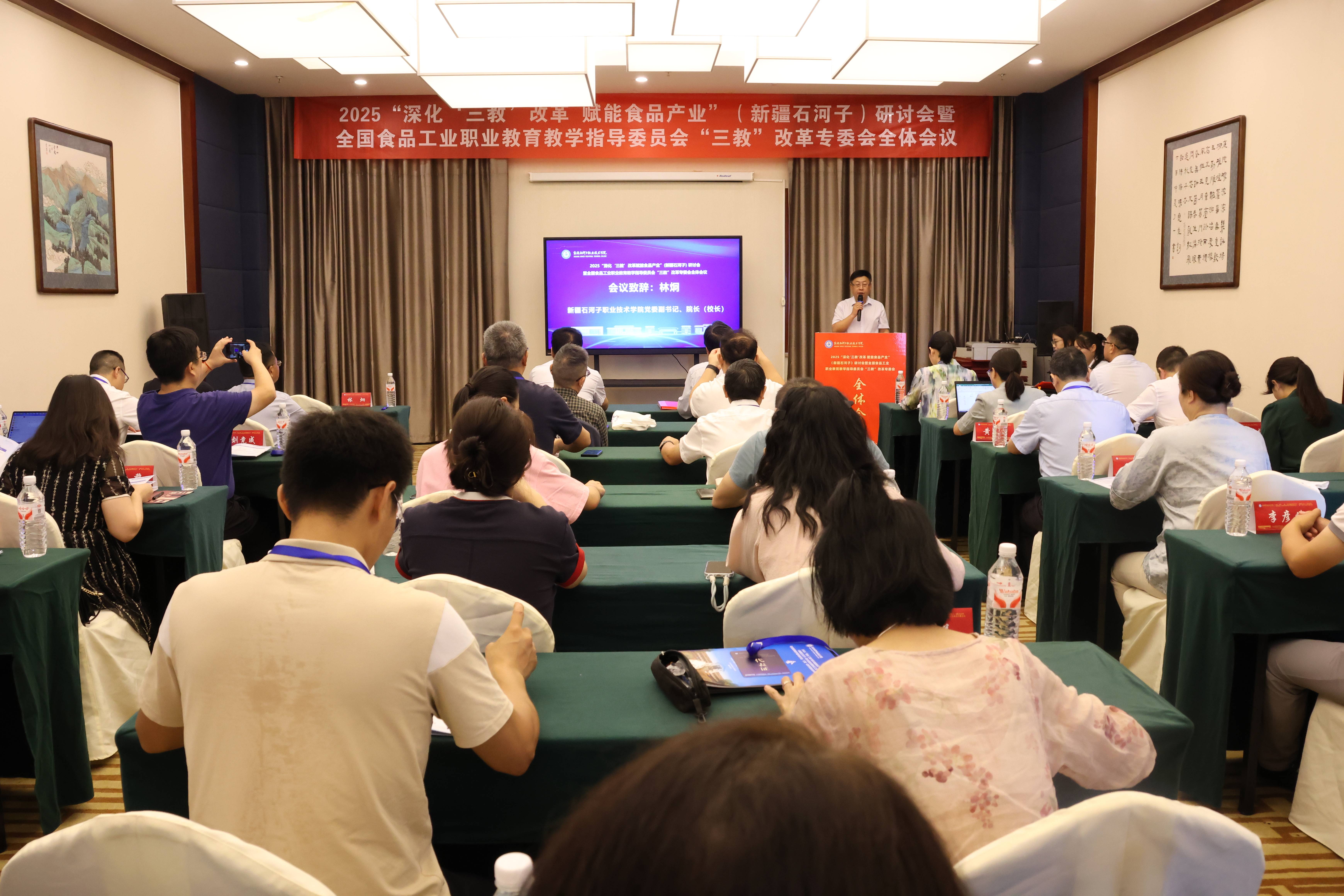 (石妍 杨慧报道)8月24日上午,由Beat365中文官方网站主办的2025“深化‘三教’改革赋能食品产业”(新疆石河子)研讨会暨全国食品工业职业教育教学指导委员会三教改革专委会全体会议开幕式,在石河子恒和华星酒店四楼会展中心综合厅举行,学校党委书记史文革、院长林炯、副院长张金果参加会议。本次会议聚焦国家职业教育政策导向,立足新疆食品产业发展需求,吸引了全国食品工业职业教育教学指导委员会“三教”改革专业委员会以及相关职业院校、企业的负责人、专家、技术骨干及代表参会。