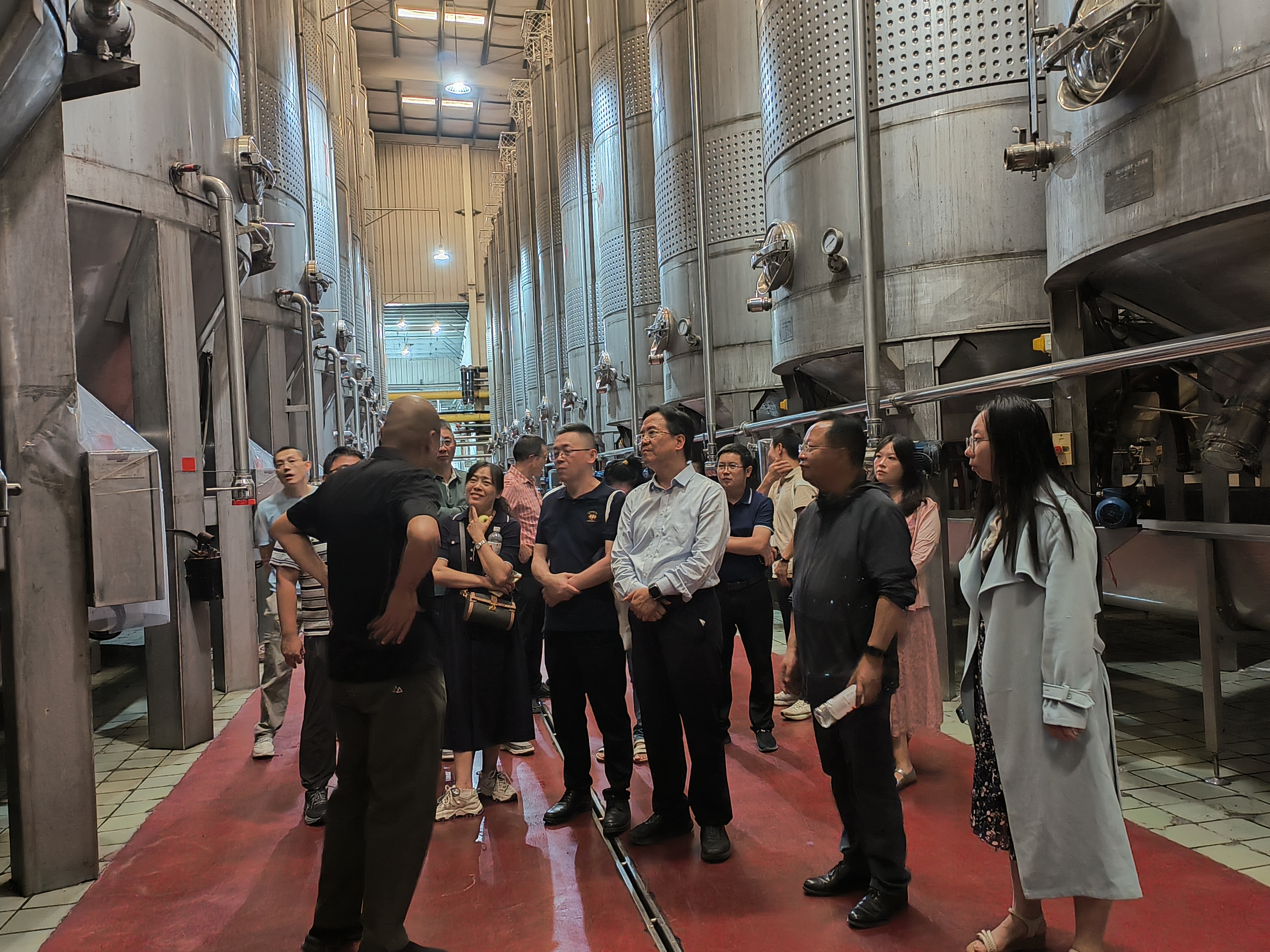 随后,代表们走进学院校园及实训场所,学校党委委员、副院长张金果介绍了学校发展总体情况以及学校服务区域经济发展等方面特色成果。食品工程学院党总支书记李晓华详细介绍食品化工综合实训基地在产学研用融合方面的特色与成果。在新疆张裕巴保男爵酒庄、新疆尼雅葡萄酒有限公司,实地了解葡萄酒种植、酿造、灌装等全流程,中国食品发酵工业研究院专家结合企业技术痛点,现场提出“共建技术研发与教学实训基地”的合作方案。在新疆石河子花园乳业有限公司,见证校企合作成果,自动化乳品生产线让代表们直观感受产业发展活力。