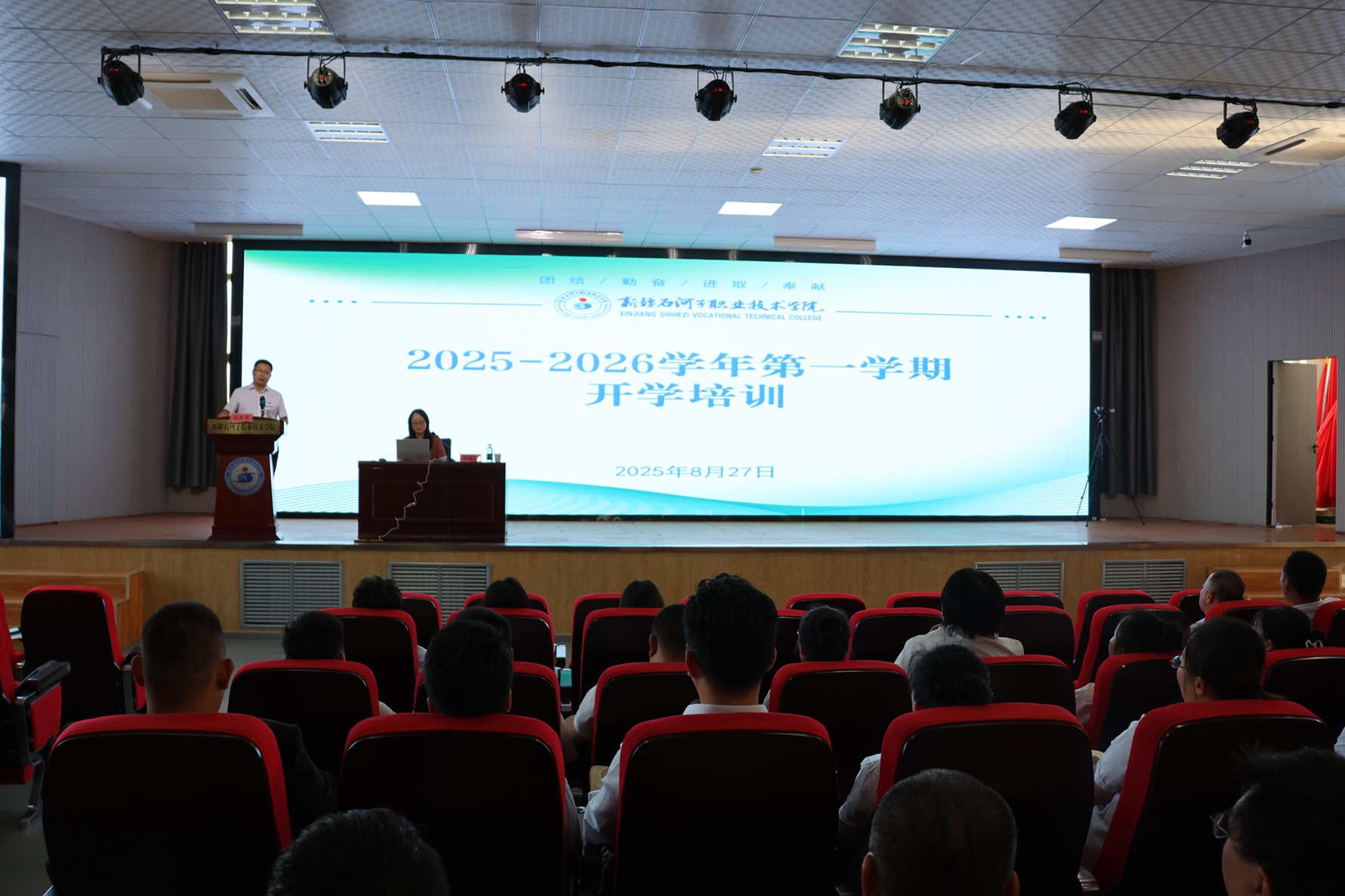 (李玲玲 报道)为助力全体教师探索人工智能环境下的新型职业教育教学改革和应用,以更佳状态迎接新学期,2025年8月27日,学校组织全体教师开展2025-2026学年第一学期开学教师培训。