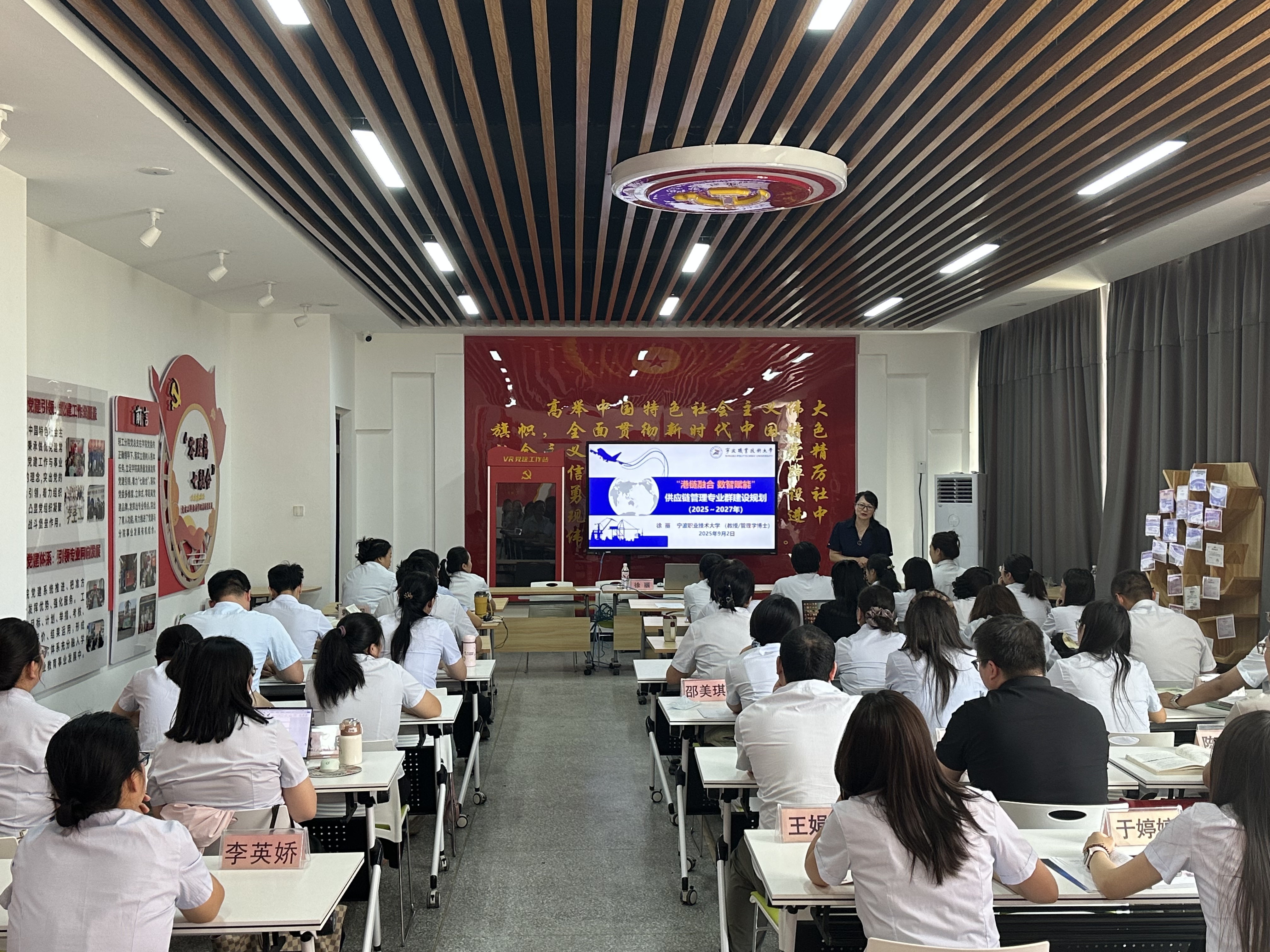 (王寒蕊 报道)2025年9月2日,宁波职业技术大学供应链管理专业群带头人徐丽教授来食品工程学院(化工与环境工程学院)开展专业群建设讲座,Beat365中文官方网站党委委员、副院长马彩梅,食品工程学院(化工与环境工程学院)党总支书记李晓华、副院长石妍及全体专业教师参加。