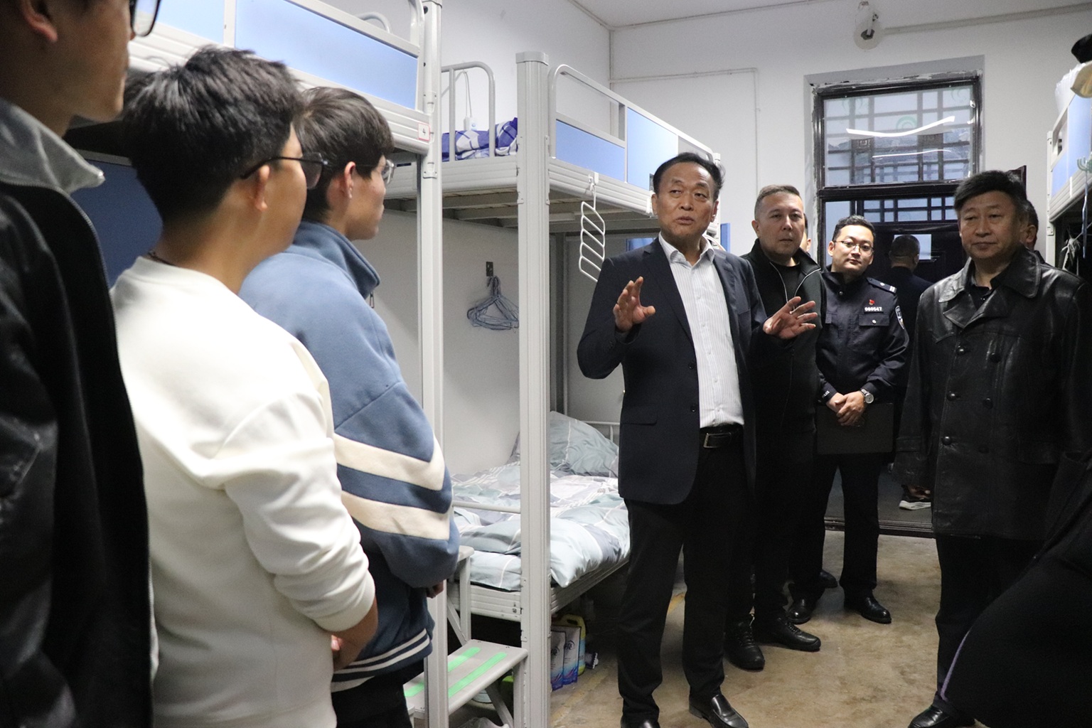 学院团队聚焦育人关怀,温情关怀与深入交流在宿舍中有序展开,“从安徽来到新疆上学,在生活上还习惯吗?气候、饮食有没有什么不适应的地方?”史书记关切地询问新生,细致了解其入学后的适应情况。“未来三年,你们的学习目标是什么?有没有初步的职业生涯规划?”在另一间宿舍,史书记与同学们探讨未来发展规划,叮嘱同学们在专注学业的同时,一定要时刻绷紧安全这根弦,不断提高自我保护意识,要学会运用法治思维,切实保障好自己的人身和财产安全。