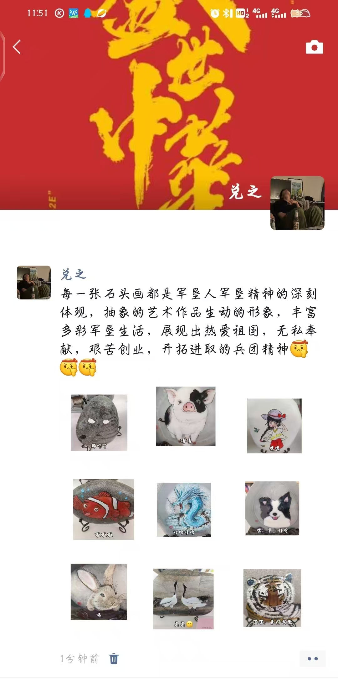 这些石头画不仅是艺术创作,更是传承中华文化赓续兵团精神的实践载体。负责承办石头画展的创新创业学院负责人杨涵教授介绍,从采石、创作到梳理故事脉络,师生在过程中已与兵团精神产生深度共鸣,这本身就是一堂生动的思政实践课