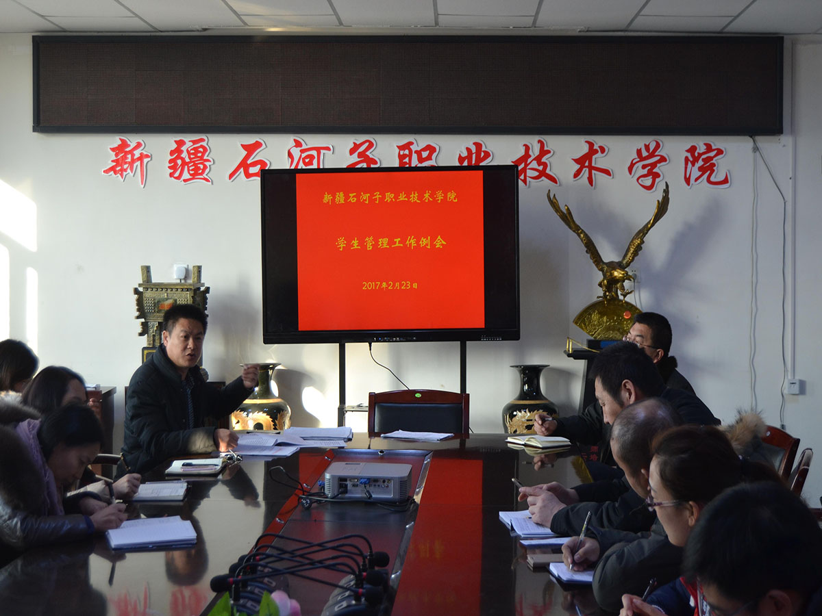 新学期新目标新成绩,为了更好地做好学生管理工作,2017年2月23日上午10:30,学院学生管理工作例会在综合楼前楼3楼会议室召开。学院副院长李卫、学生处处长陈峻、团委书记蒋小玉、各分院书记、学管老师及学生处全体人员参加会议。会议由学生处处长陈峻主持。