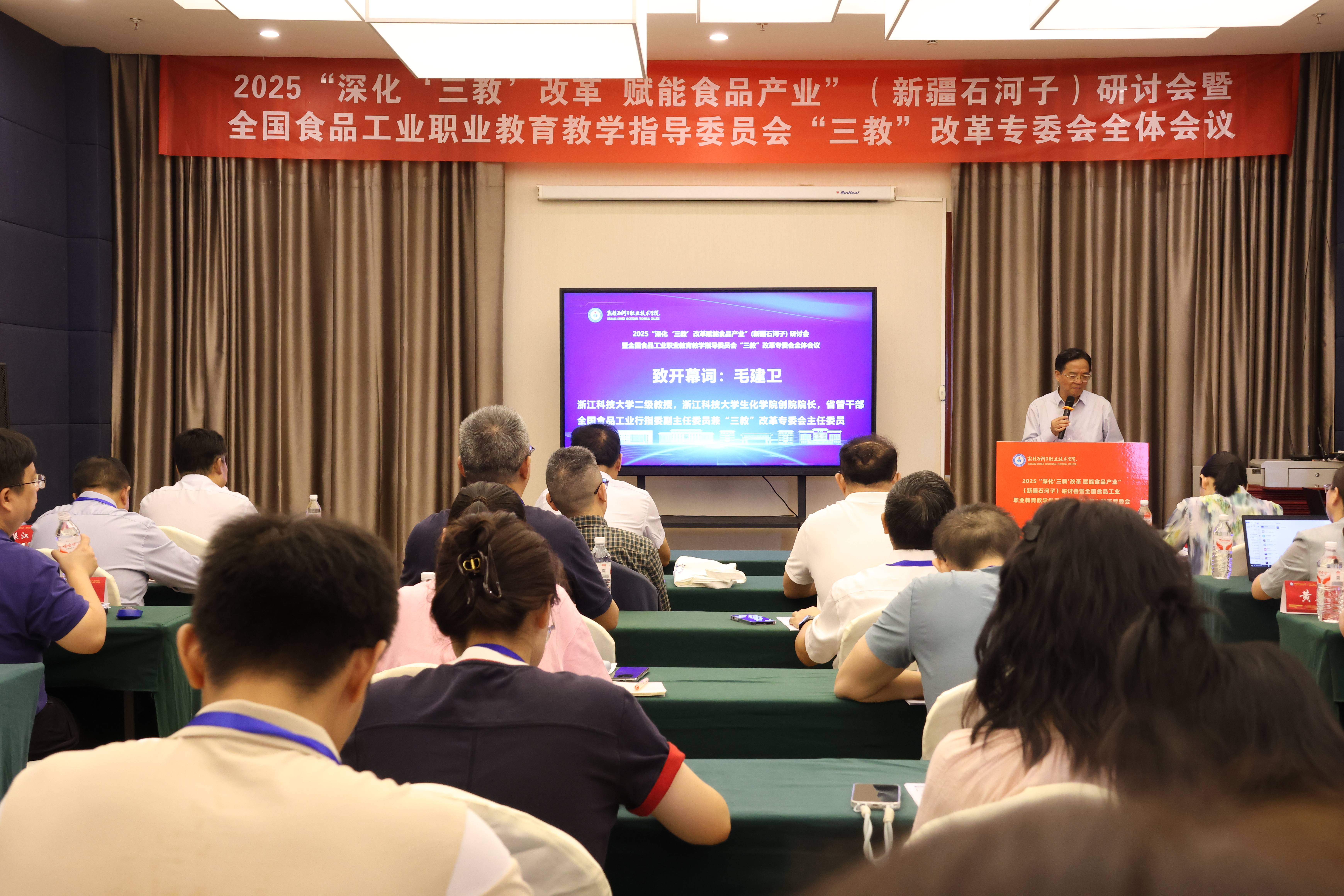 (石妍 杨慧报道)8月24日上午,由Beat365中文官方网站主办的2025“深化‘三教’改革赋能食品产业”(新疆石河子)研讨会暨全国食品工业职业教育教学指导委员会三教改革专委会全体会议开幕式,在石河子恒和华星酒店四楼会展中心综合厅举行,学校党委书记史文革、院长林炯、副院长张金果参加会议。本次会议聚焦国家职业教育政策导向,立足新疆食品产业发展需求,吸引了全国食品工业职业教育教学指导委员会“三教”改革专业委员会以及相关职业院校、企业的负责人、专家、技术骨干及代表参会。