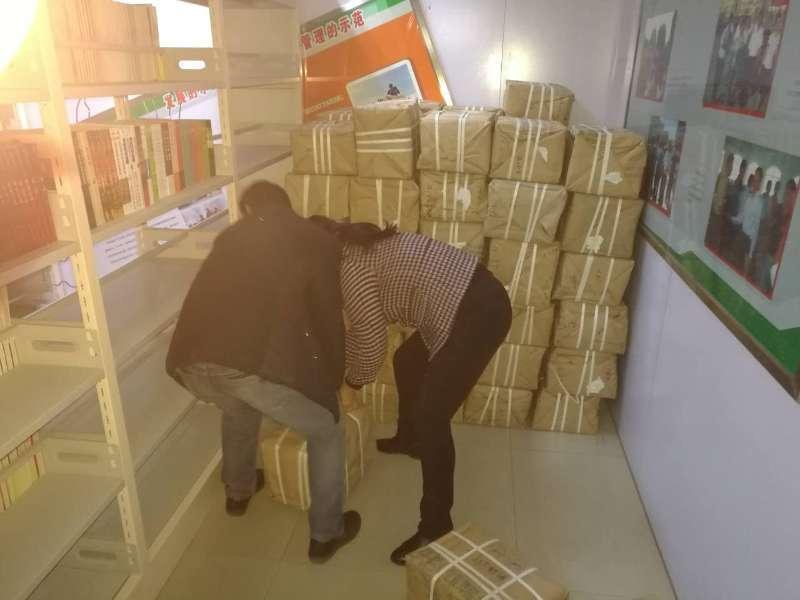此时正值假期,学院图书馆在管和疆副院长、李卫副院长、许宏阁主任、史从德主任的支持下,很多老师不顾天寒地冻,不顾生病和体弱从家里赶到学院,在后勤管理服务中心宋世明、韩东、蒋太斌、任卫东、姜万军、李建英、冯玲、孙新红、朱宏建、安荔、马洪海、罗文凤、霍西梅、张运清、王昆玲、陈玉婷、田新国,保卫处党博文、何易、张师傅等19位老师,信息分院李森院长组织的田东东等3名学生、无人机培训班陈乾等6名学生的帮助下,将赞助的162包(3吨多)的图书搬运到图书馆地下室,为学院师生送来满载着温暖和爱心的精神食粮。