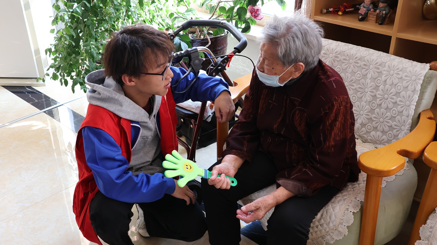 活动中,同学们与老人们围坐在一起促膝长谈。他们耐心倾听老人们讲述过往岁月,还不时关切地询问老人的身体状况与日常生活。期间,93岁高龄的金茂芳奶奶——新中国第一代女拖拉机手、全国劳动模范、“最美奋斗者”称号获得者,结合自身经历为大家上了一堂生动深刻的思政课。她深情回顾年轻时响应号召、投身新疆建设的激情岁月,还语重心长地勉励同学们:“孩子们,新疆是个好地方,你们生在好时代,更要珍惜时光。在学校里一定要学好技能、练就本领,脚踏实地一步一个脚印地干事,未来的新疆等着你们建设得更美好!”金奶奶朴实却铿锵的话语,深深烙印在每一位学子心中,也激发了大家强烈的历史使命感与责任感。此外,同学们还用手机为老人们拍摄照片和短视频,记录下他们开心的笑容,定格温馨瞬间;大家还有序分组,拿起清扫工具整理老人房间、打扫公共区域,用实际行动为老人们营造了整洁舒适的居住环境。