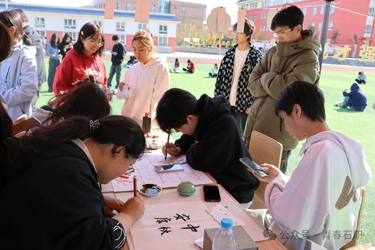 为传承中秋传统文化,进一步激发全体师生的爱国情怀与民族自豪感,双节期间,学校团委组织全体在校生开展中秋主题系列活动,邀全体师生共赴一场诗意与热忱交织的双节之约。校园里,书法体验区墨香四溢,同学们挥毫泼墨,书写家国情怀;“三人四足吃月饼”趣味竞赛现场欢声笑语不断,考验默契更传递快乐;五彩斑斓的灯谜下,学子们凝神思考,感受着传统文化的底蕴与智慧……学生们在趣味文化活动中进一步增强了民族自豪感和文化自信。学生会、青年志愿者协会组织开展红色观影活动,同学们在光影中回顾红色历史,汲取奋进力量。