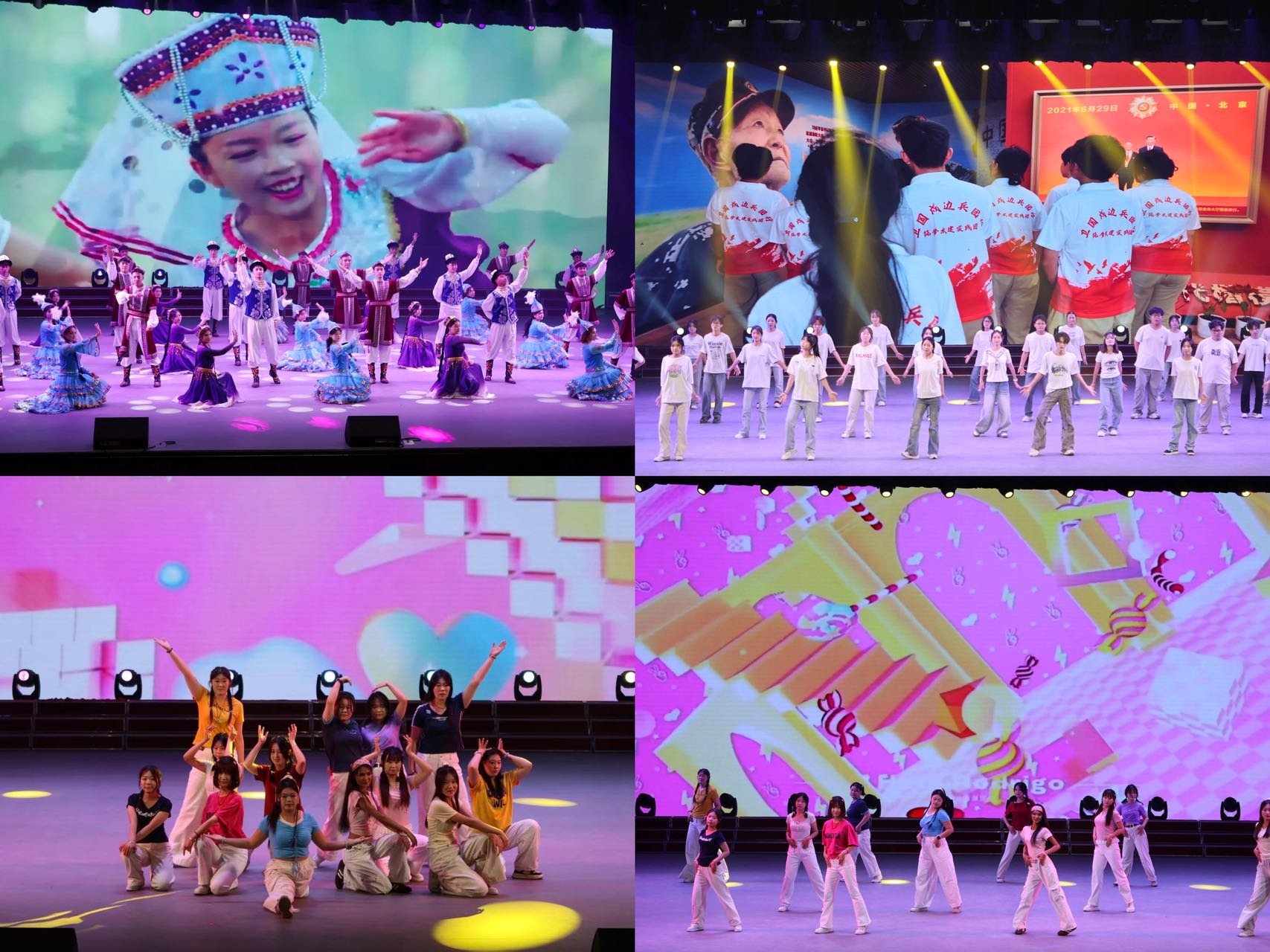 晚会以“致敬历史、礼赞匠心、逐梦未来”为脉络串联三大篇章,在展现校园文化魅力的同时,更以青春视角呼应新疆维吾尔自治区70载奋斗征程,彰显“铸牢中华民族共同体意识”的主题。现场设置的三大互动空间人气爆棚:“点燃梦想照亮未来”打卡区前学子们有序排队定格青春瞬间,文创印章集章区里大家争相收集兵团精神符号,社团成果展示区被热情的新生围得水泄不通,大家边看边交流,眼中满是对大学生活的憧憬与期待。