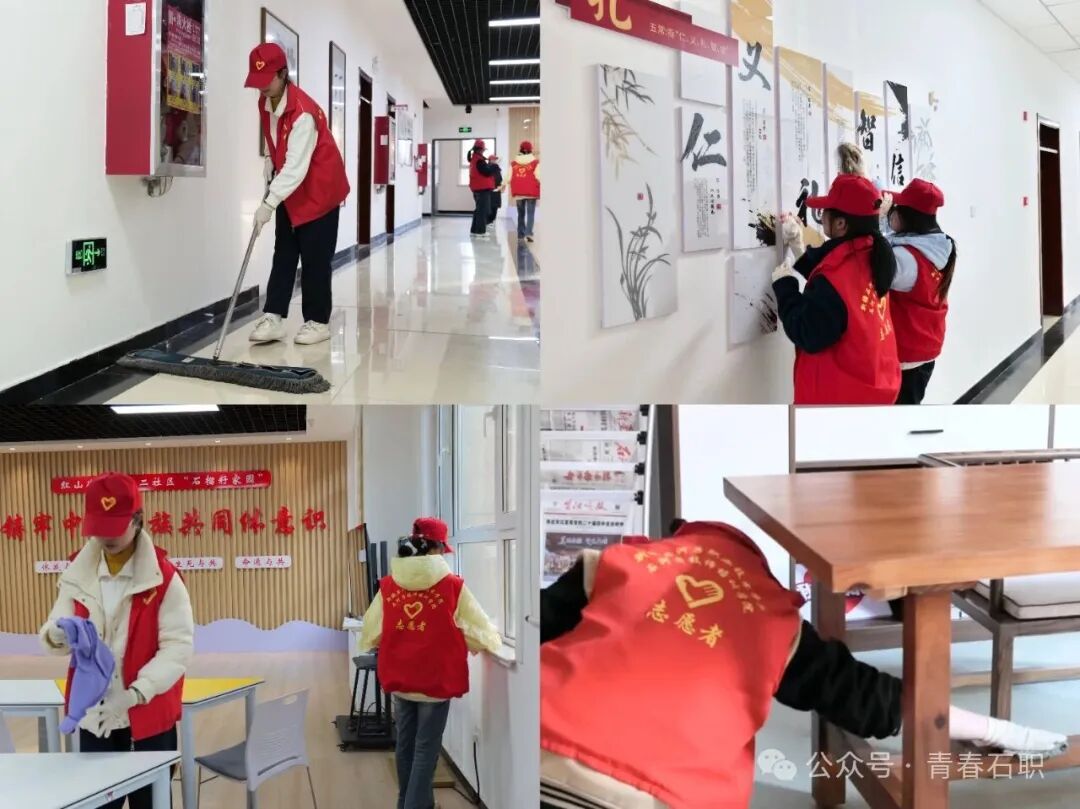 活动中,志愿者们根据任务内容分为社区清洁与仓库整理两个小组。在带队老师的协调下,各小组迅速明确分工,有序前往责任区域投入工作。清洁组队员手持扫帚、抹布等工具,对社区公共区域进行细致清扫,认真擦拭公共设施,不留死角;整理组队员则在社区工作人员的带领下协作配合,将仓库物品分类归置、清理搬运积存物资,优化空间布局。全体同学热情饱满、分工协作,在劳动中展现出不怕脏、不怕累的实干精神。经过大家的共同努力,社区环境变得更加整洁有序,仓库面貌也焕然一新,整体环境得到显著提升。