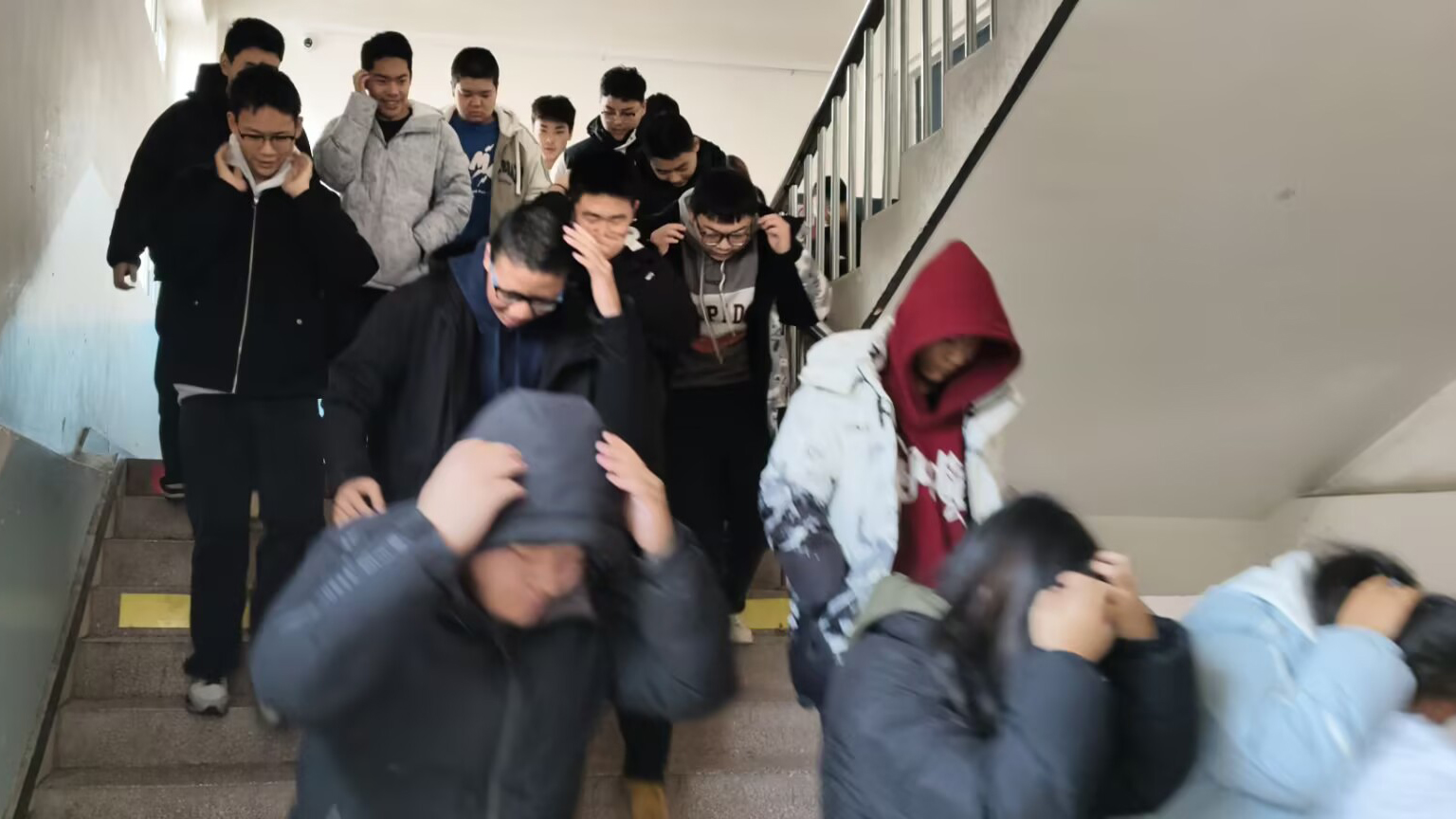 演练前,公共基础学院制定了详细预案,结合教学楼宇实际布局,精准制定各班级安全疏散逃生路线图,明确逃生过程中的各项注意事项与纪律要求,确保演练安全有效开展。随着演练指令发出,正在上课的师生迅速响应,掩护头部蹲于课桌下避险,并在各班教师的指挥下,沿逃生路线弯腰护头、快速有序撤离,楼梯口、转角处均有专人引导,全程无拥挤、无停留。四分钟内,全体学生安全抵达操场指定区域,各班迅速清点人数并向指挥部报告。整个演练过程紧张而不慌乱、紧凑而有序,达到了预期效果。公共基础学院学生管理办公室主任杨凯在演练总结中要求师生进一步强化自身安全意识,熟练掌握应急流程,共同筑牢校园安全防线。