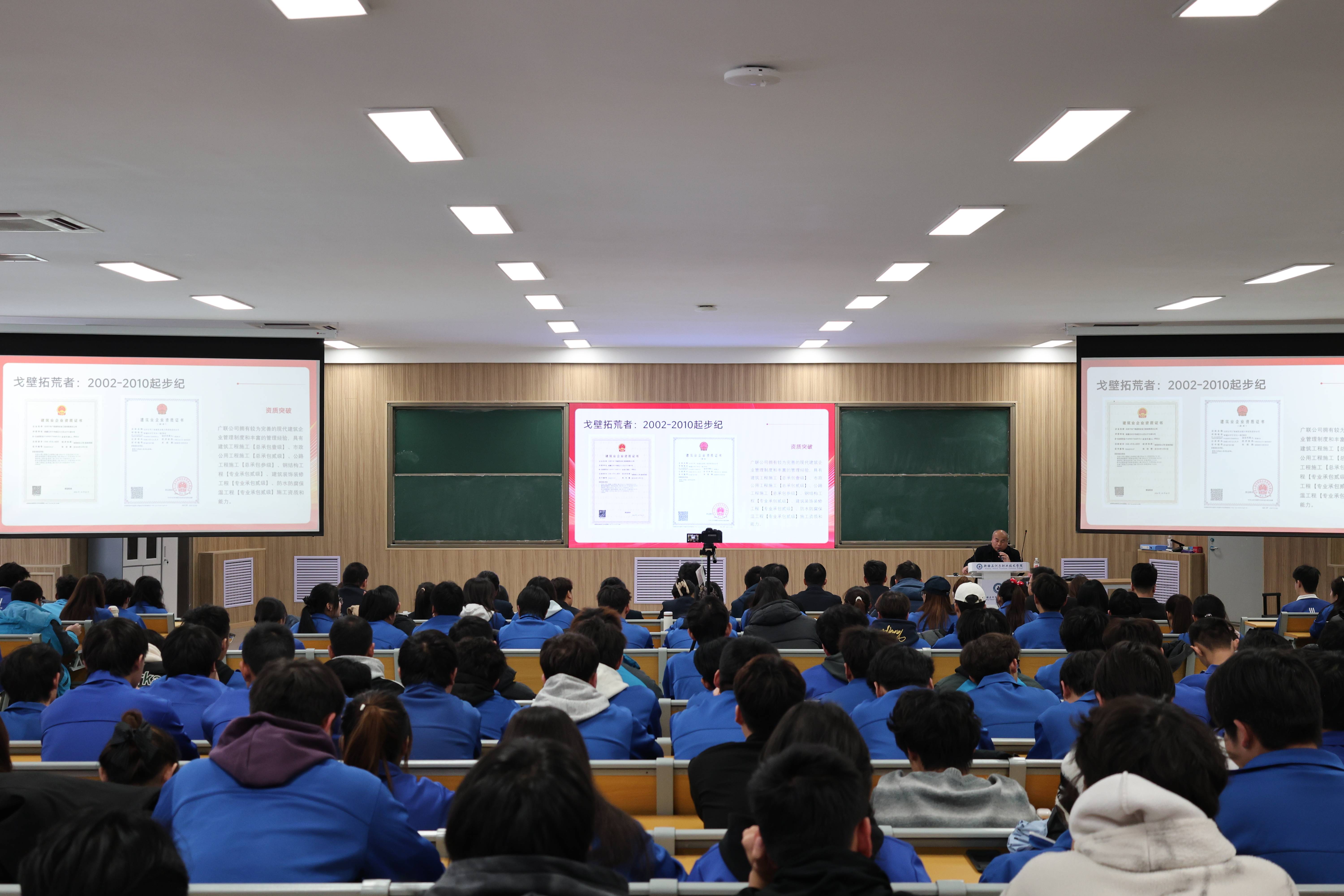 (张馨 报道)2025年12月10日下午,在广智楼阶梯101教室,水利建筑工程学院携手石河子市广联建筑公司,共同开展“中国共产党人精神谱系”宣讲活动。石河子市广联建筑公司党支部书记张立光以“传承精神谱系 践行兵团初心——石河子市广联建筑公司与石河子青年共话成长”为题作了专题宣讲,学院200余名师生参加。本次宣讲旨在通过企业与高校的对话,引导青年学子从建设一线的生动实践中汲取兵团精神力量,筑牢理想信念之基。