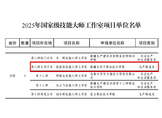 我校作为“国家级高技能人才培养示范基地”,高度重视技能大师工作室建设,已建成多个省级工作室及实训平台,形成“国家级引领、省级支撑、校级联动”的建设格局。此次张俊祖工作室获批,是我校首个国家级技能大师工作室,对学校服务兵团职业教育高质量发展有重要意义。