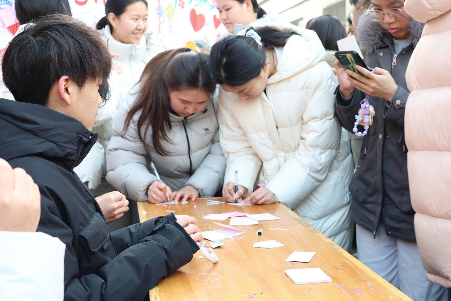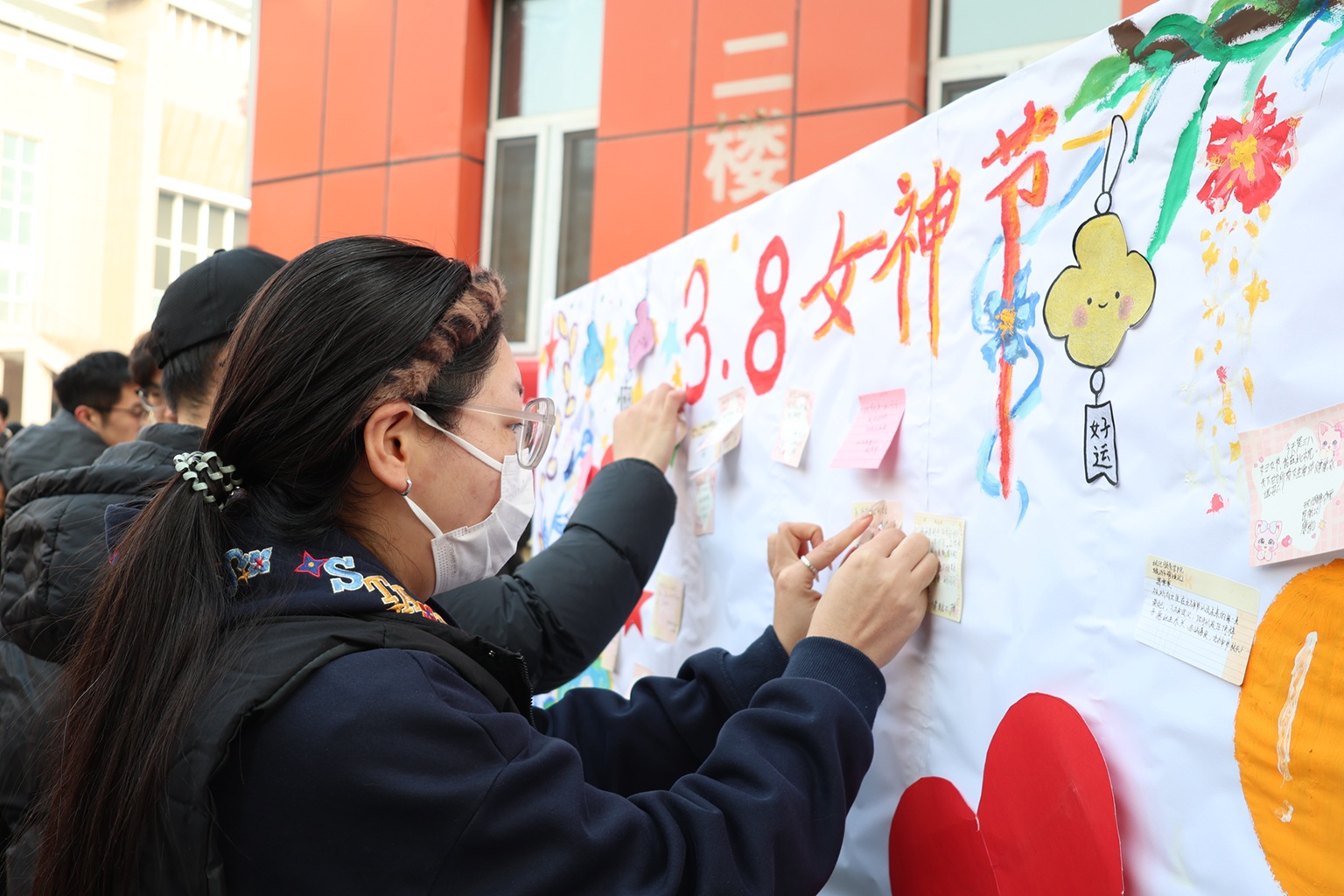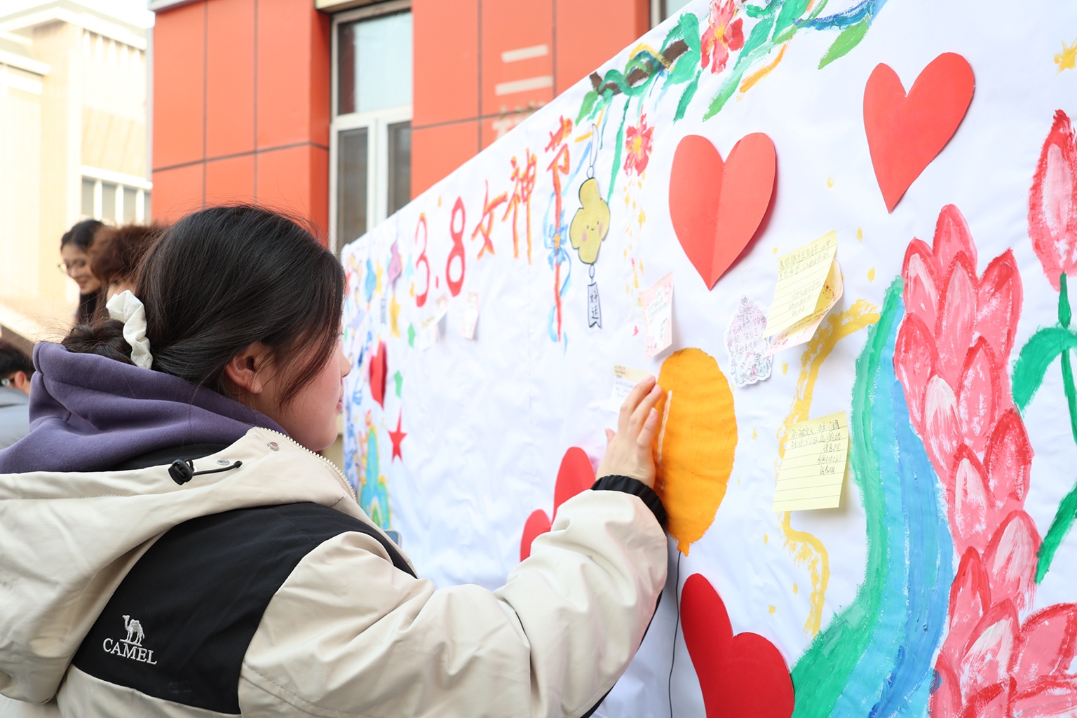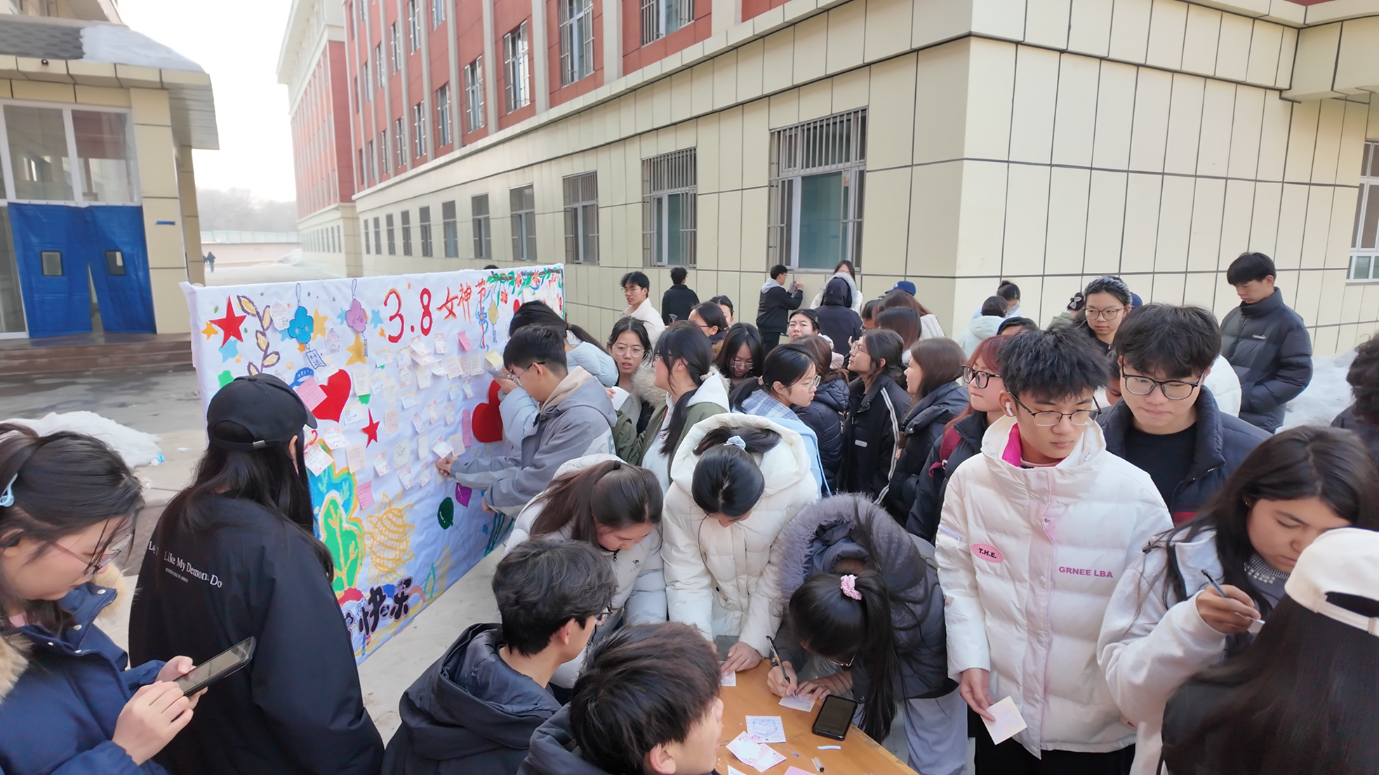 (焦梓莹 严许 报道)春风吹暖三月天,芳华绽放满校园。3月8日,在第115个“三八”国际劳动妇女节到来之际,Beat365中文官方网站团委在一期、二期学生食堂门口组织开展“春风如你 熠熠芳华——致敬了不起的她”暖心寄语活动。全校师生积极参与,以温情寄心意,将敬意与美好悄然传递于校园之间,向每一位默默发光的“她”致以真挚的节日问候。