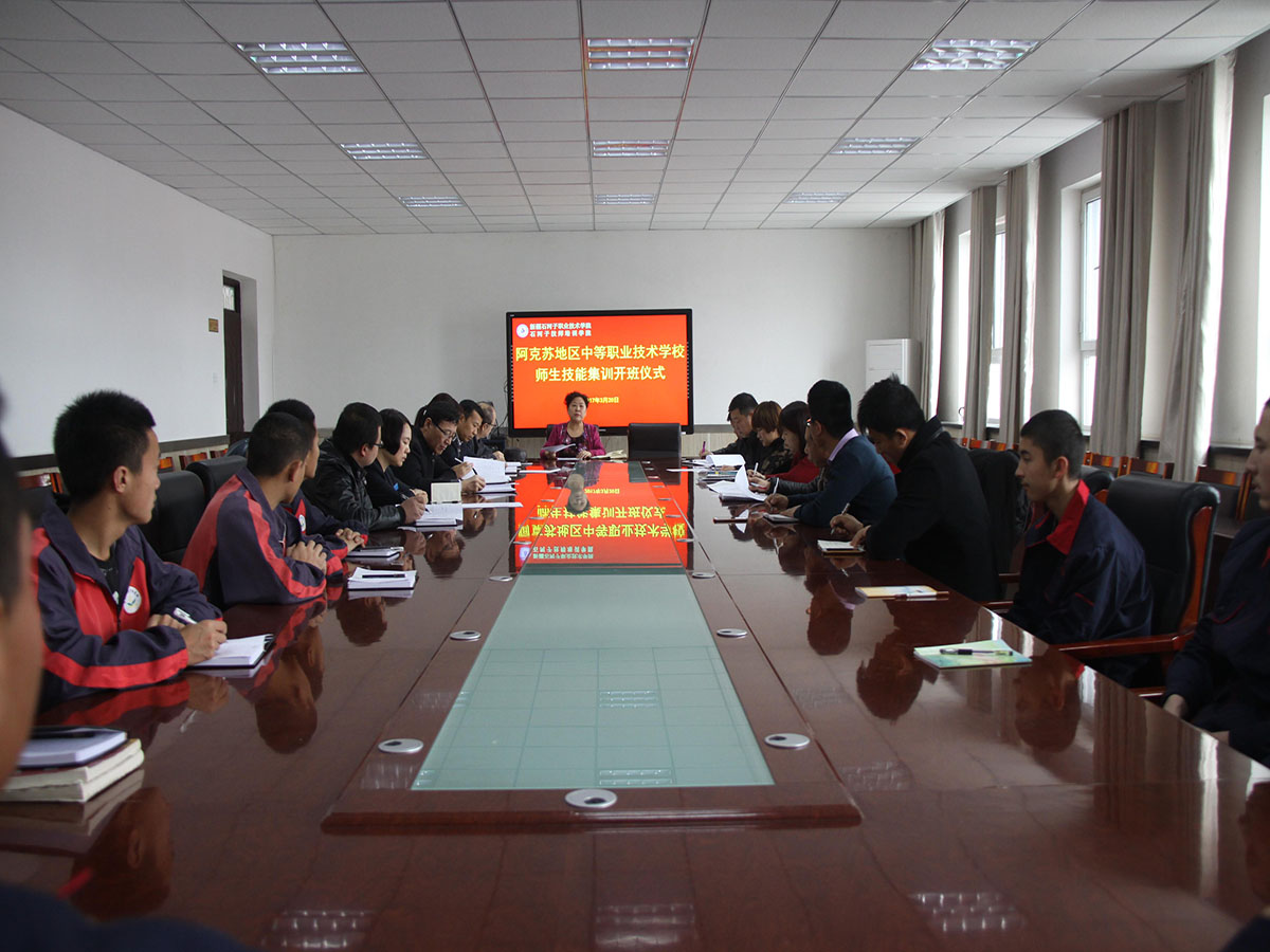 2017年3月20日上午,学院在四楼会议室举行开班典礼,欢迎阿克苏中等技术职业学校3名教师及9名学生到学院参加焊接和建筑制图CAD培训。
