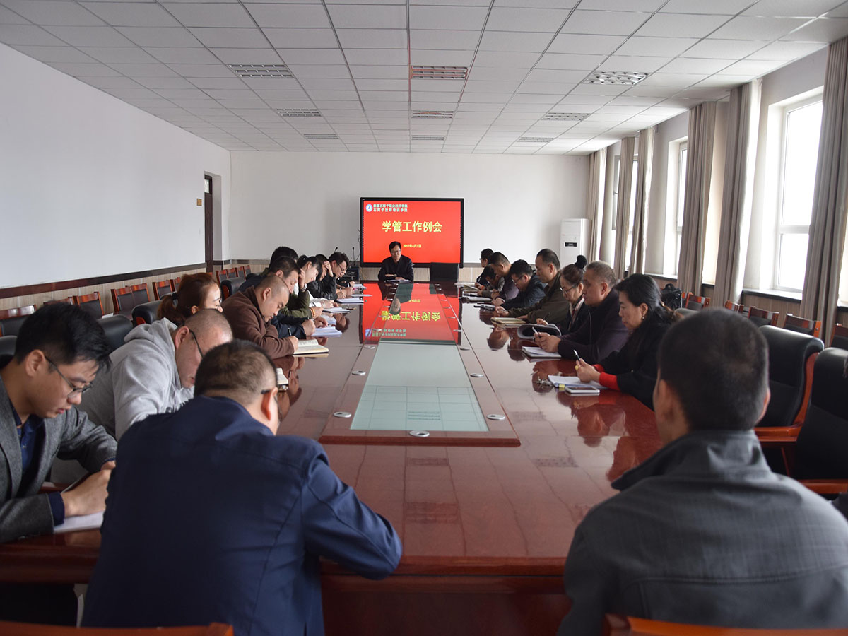 为贯彻落实学院党委的会议精神,加强学生管理,服务学生成长成才,2017年4月7日上午10:30分学院学管工作例会在培训中心四楼第一会议室召开。学院李卫副院长,学生处、团委全体工作人员,各分院主要领导及分院学管工作负责人参加了会议。会议由学生处处长陈峻主持。