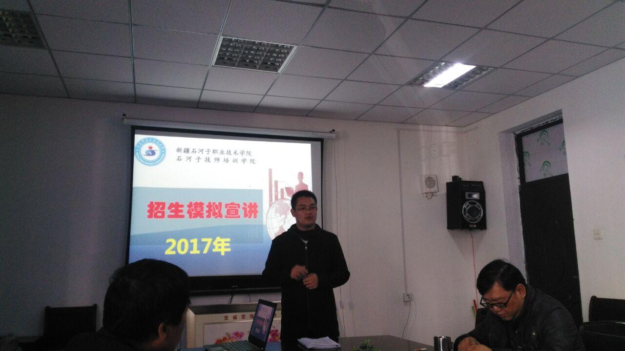 会上,学院副院长王华东针对师市党委对学院发展规模的要求以及目前严峻的招生形势进行了分析,并对招生人员提出要求:一是招生宣传时严格按照教育部及自治区诚信招生的要求,如实介绍学院情况。二是宣传时要把学院先进的办学理念、就业优势、实习实训、校企合作及参加各种大赛获得的优异成绩等介绍给家长及考生。三是强调在招生宣传的同时一定要把安全放在第一位。随后,招办主任宫崇勇传达学习了《自治区2017年普通高校招生工作规定》和《石河子2017年普通高中招生工作会议》文件精神,并对学院2017年单独招生和直升高职(专科)的招生宣传及录取情况进行了总结和详细的分析。招生办副主任高于对学院助学政策、奖学金政策和大家进行学习,对如何做好招生宣传工作和招生技巧进行了分享。