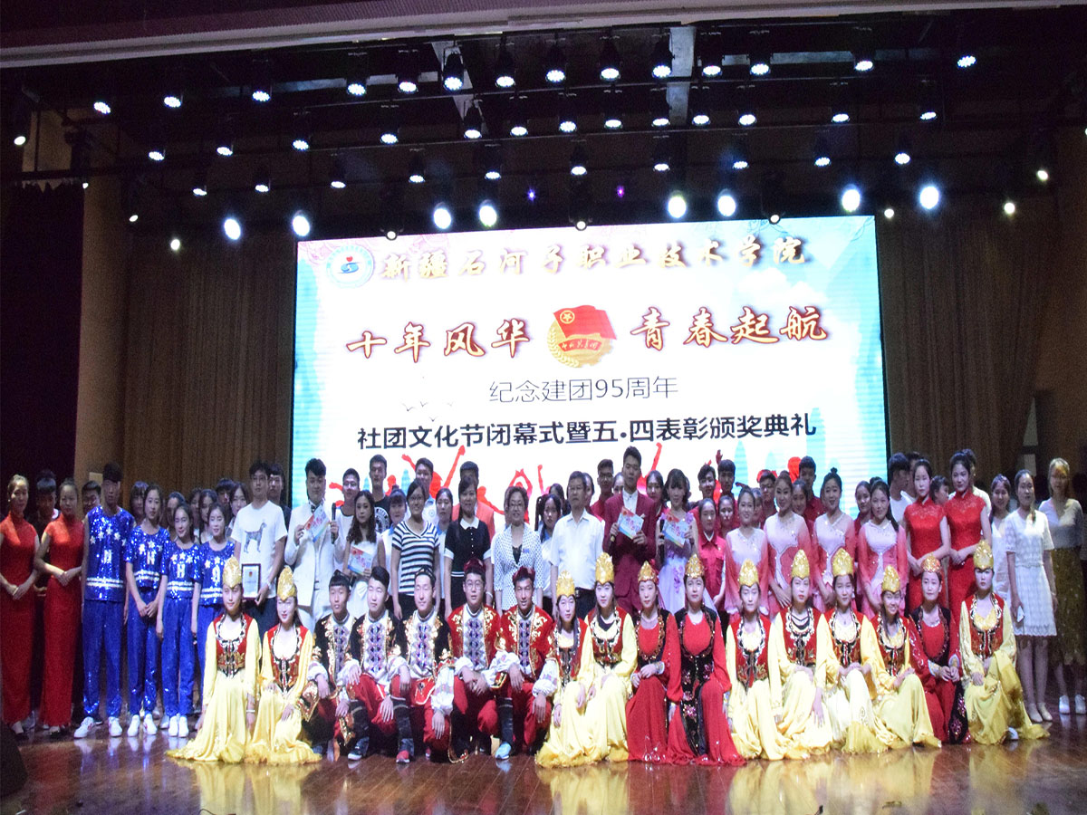 活动在社团联合会的啦啦操《青春起航》中拉开帷幕。王华东副院长为八师五四红旗团总支、五四红旗团支部及师市“五四青年”奖章获得者王丽和青年岗位能手吴江超颁发奖牌和荣誉证书。耿荣副院长为优秀团员团干部、优秀学生会干部颁奖。团委书记蒋小玉为先进社团、社联先进个人、优秀播音员、优秀记者授予荣誉证书。学院党委陈建丽书记为优秀志愿者颁奖并为新成立的学术性社团——视频制作社和图形图像设计社团指导教师颁发聘书。