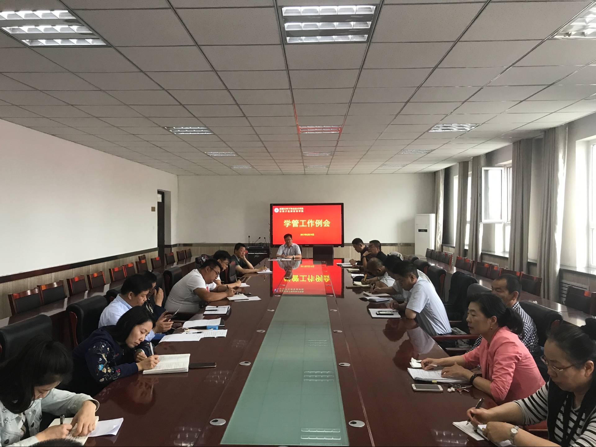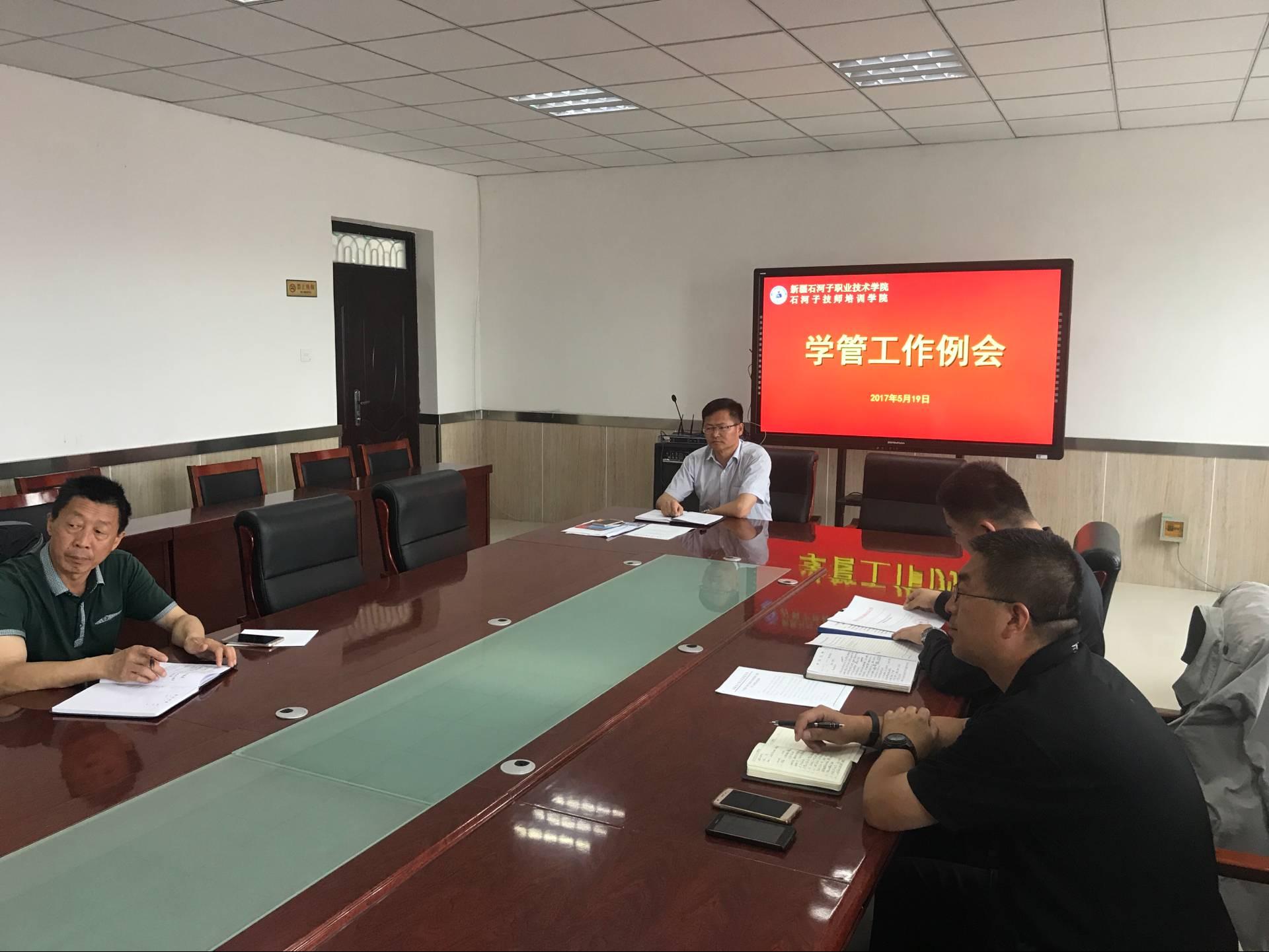 2017年5月19日上午10:30分学院学管工作会议在培训中心四楼第一会议室召开。学院李卫副院长、学生处、团委、分院分管主要领导及学管负责人参加了会议。会议由学生处副处长陈峻主持。