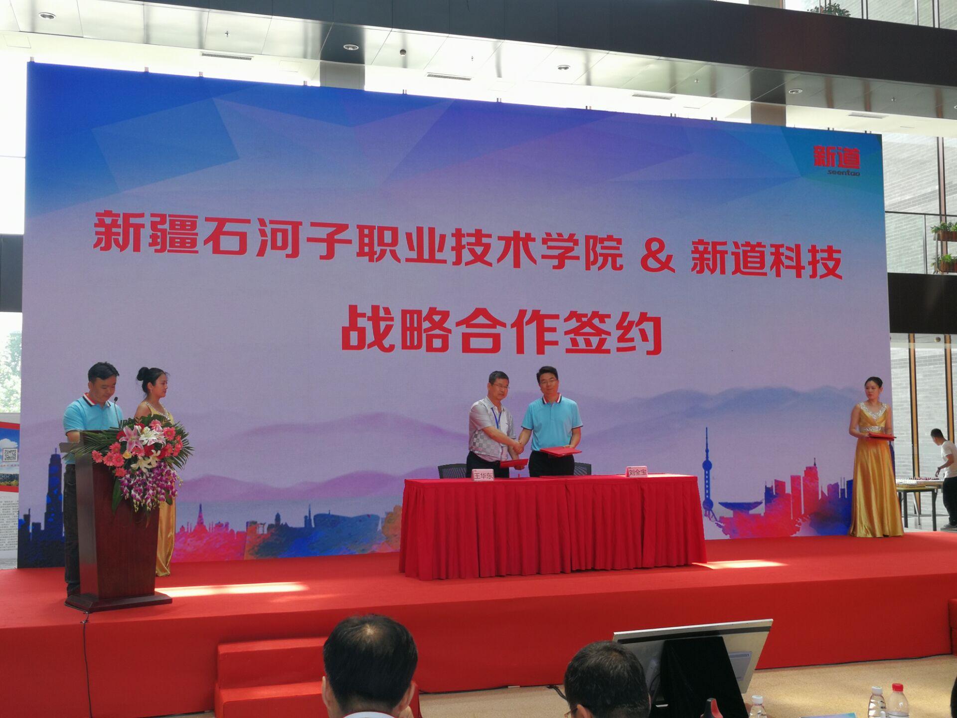 为更好的贯彻落实党的十八大关于加强创新创业人才培养的战略部署,深入落实兵团关于大众创业,万众创新深化创新创业教育改革,5月20日,在北京新道科技股份有限公司“创新拥抱未来,新道科技六周年客户服务升级年会”上,王华东副院长代表学院签署战略合作框架协议。