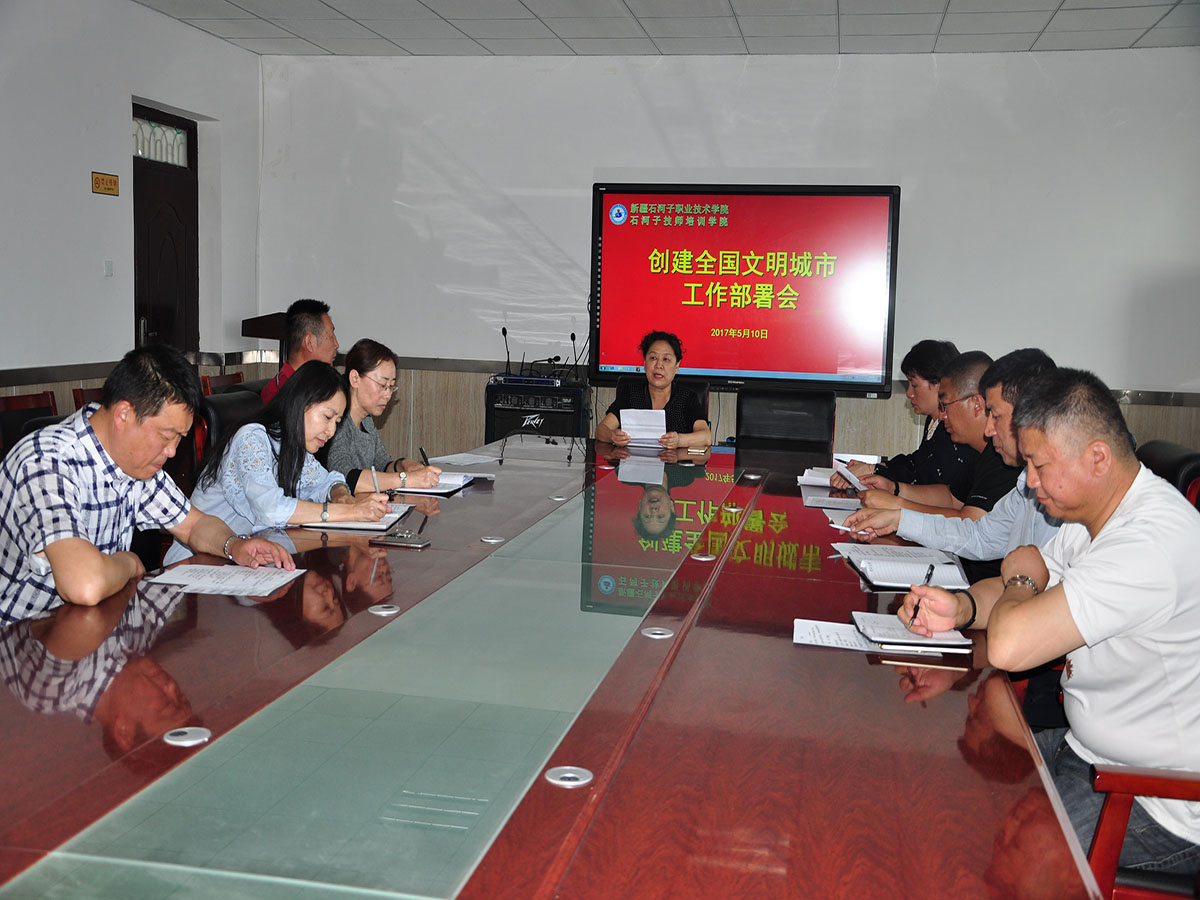 2017年5月10日下午,学院召开了紧急会议,部署创建文明城市工作,会议由纪委书记周赞梅主持,参加会议的有各分院书记、院长。