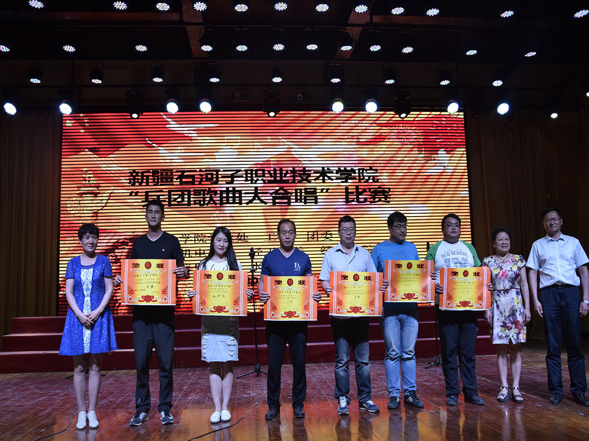 “生在井冈山,长在南泥湾。转战数万里,屯垦在天山。”根据兵团宣传部、师市宣传部《关于开展三五九旅精神宣传教育活动的通知》要求,大力宣传弘扬三五九旅精神、兵团精神,进一步统一思想、坚定信心、凝聚力量,为贯彻落实兵团党委、师市党委各项决策部署、提升兵团维稳戍边综合实力、促进新疆社会稳定和长治久安提供强大的精神动力、良好的文化条件和社会氛围,2017年6月14日下午,学院学生处、工会、团委在综合楼4楼举办的“兵团歌曲大合唱”比赛圆满落幕。学院副院长管和疆、纪委书记周赞梅、副院长李卫观看了比赛。