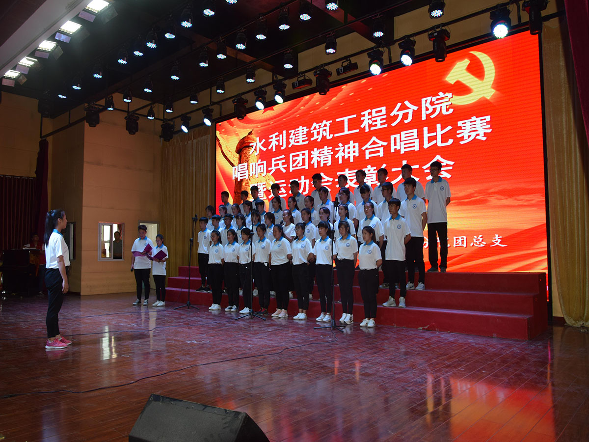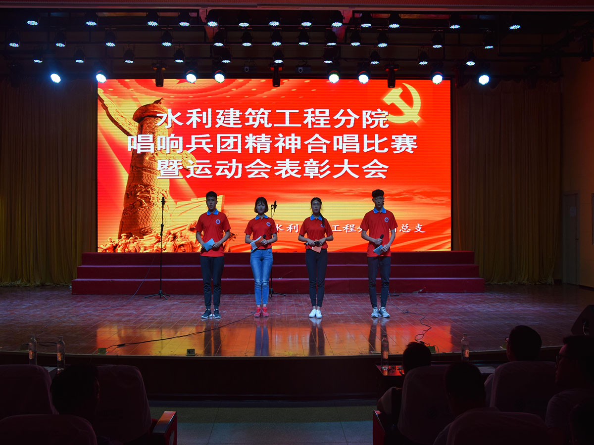 5月25日下午水建分院在综合楼四楼举办了《唱响兵团精神大合唱暨运动员表彰大会》活动。学院副院长王华东、李卫、耿荣,水建分院院长弓中伟、副院长代林、机电分院书记胡英、团总支杨徐飞、轻工分院院长栗劲松、信息分院书记朱卫泉、中职分院副院长马木提、图书馆馆长陈建红及水建分院全体师生出席了此次活动。