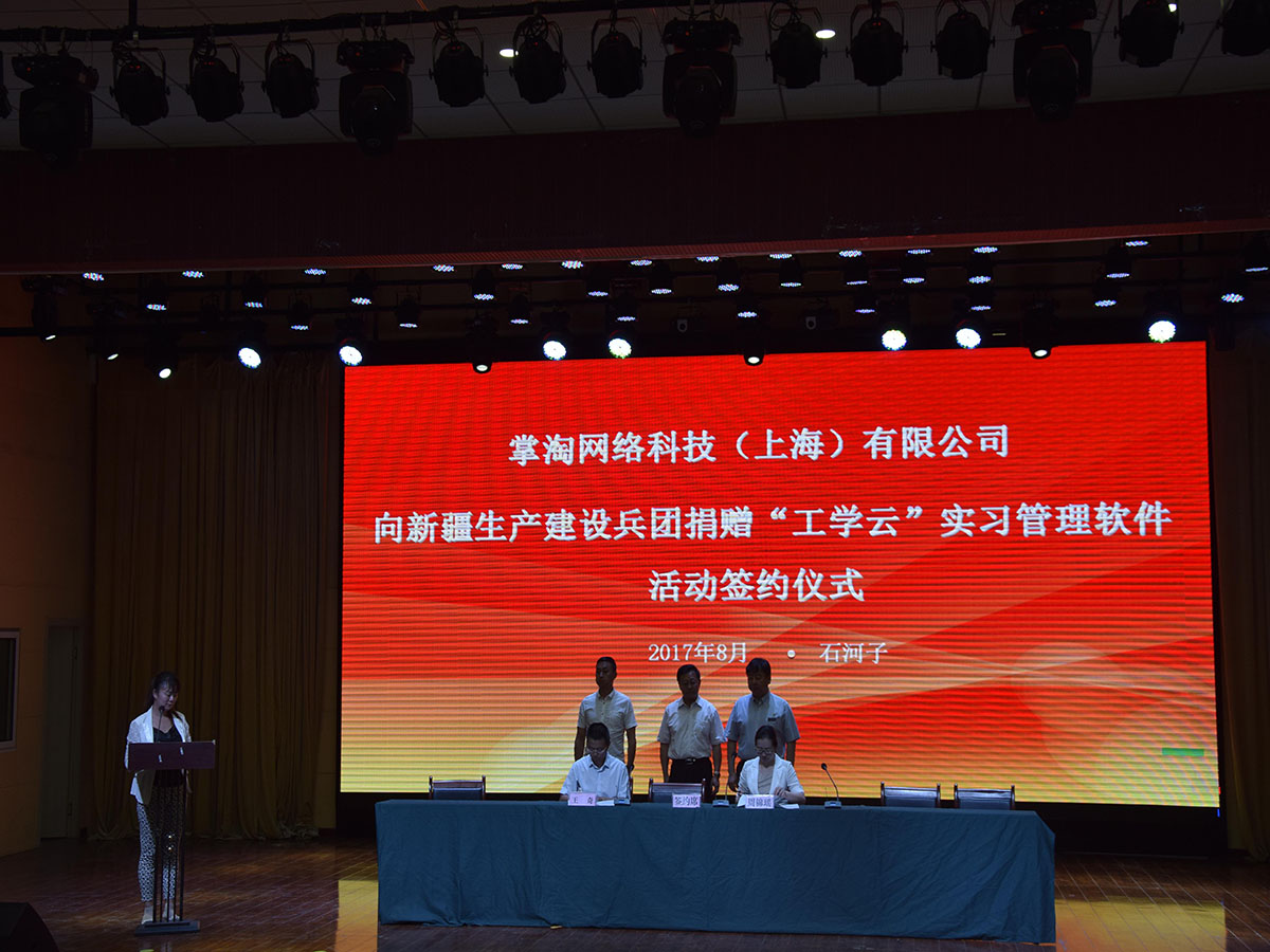 会后,兵团教育局职业教育与成人教育处处长周锦瑶与掌淘网络科技(上海)有限公司副总经理王奇就掌淘网络科技(上海)有限公司向新疆生产建设兵团捐赠“工学云”实习管理软件活动进行了签约。