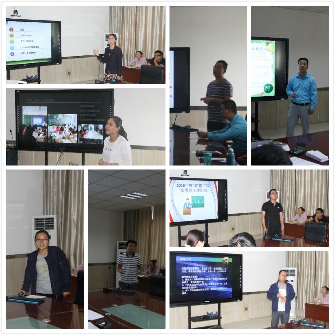 2016年入职的24位青年教师用PPT形式汇报了入校一年来在教学、科研、班主任、个人能力提升及社会实践等多个方面的工作情况,总结了工作业绩与存在的不足,同时也进行了个人反思,找出差距,提出了今后的工作目标。学院领导、各处室及各分院领导组成考评组,