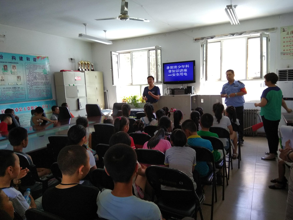 8月份天气炎热,是用电高峰,我们针对这一情况,在学生当中开展了用电安全的教育活动。活动中,给大家介绍了电器的种类、安装使用规程,如何解决电器火灾故障,遇到问题的时候如何逃生,通过活动同学们基本了解和掌握了用电安全知识。同时根据学生的兴趣,我们还在业余时间和社区一同为学生组织了主题为“建幸福家庭,倡和谐邻居”趣味运动会,开展老少共建、和谐邻居活动。趣味运动会结合学生的实际特点,设立了“摸石头过河”“掂乒乓球”“跳绳”“立定跳”等四个项目的趣味活动。根据比赛的成绩颁发了由我们分院支部提供的学习文具等小奖品。