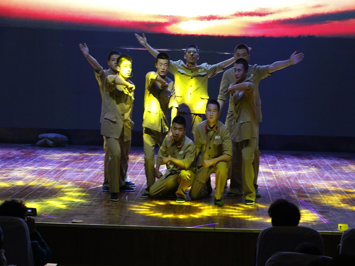 在师生们都满怀兴趣的期待着下一个节目的时候,话剧《大漠无悔》为观众们带来了兵团人自己的故事,演员们通过生动的表演讲述着兵团人、兵团精神的点点滴滴,那是对初心的坚持,那是对党的忠诚,这份感情不仅感动了在座的师生,同时也唤起了中国人共同的梦想,随后的节目《不忘初心》、《我的中国梦》更是把这份感情烘托到了极点。