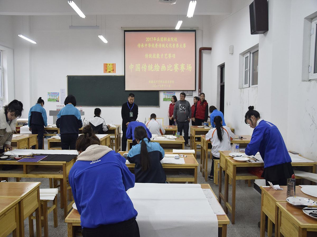 11月29日下午,2017年兵团职业院校传承中华优秀传统文化素养大赛书法、剪纸、中国传统绘画类比赛在我院阶教一楼召开,来自Beat365中文官方网站、石河子大学护士学校、石河子卫生学校、石河子文化艺术学校的66名选手参加了比赛,在40分钟的比赛时间内分别完成剪纸、书法、中国传统绘画等相关作品。