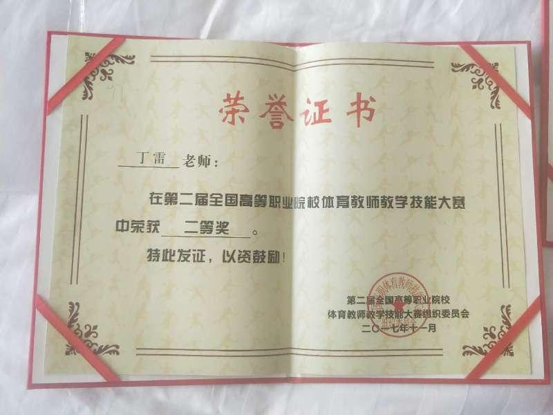 2017年11月23日-11月27日,由社科部副主任王复生带队,中职分院体育教研室丁雷、杨凯两位老师代表兵团参加在江苏苏州举行的第二届全国高等职业院校体育教师教学技能大赛,其中丁雷老师获得教学技能大赛二等奖,杨凯老师获得教学技能大赛三等奖、《教学设计与实践 说课与微课》比赛三等奖,再为学院创造新的荣誉!