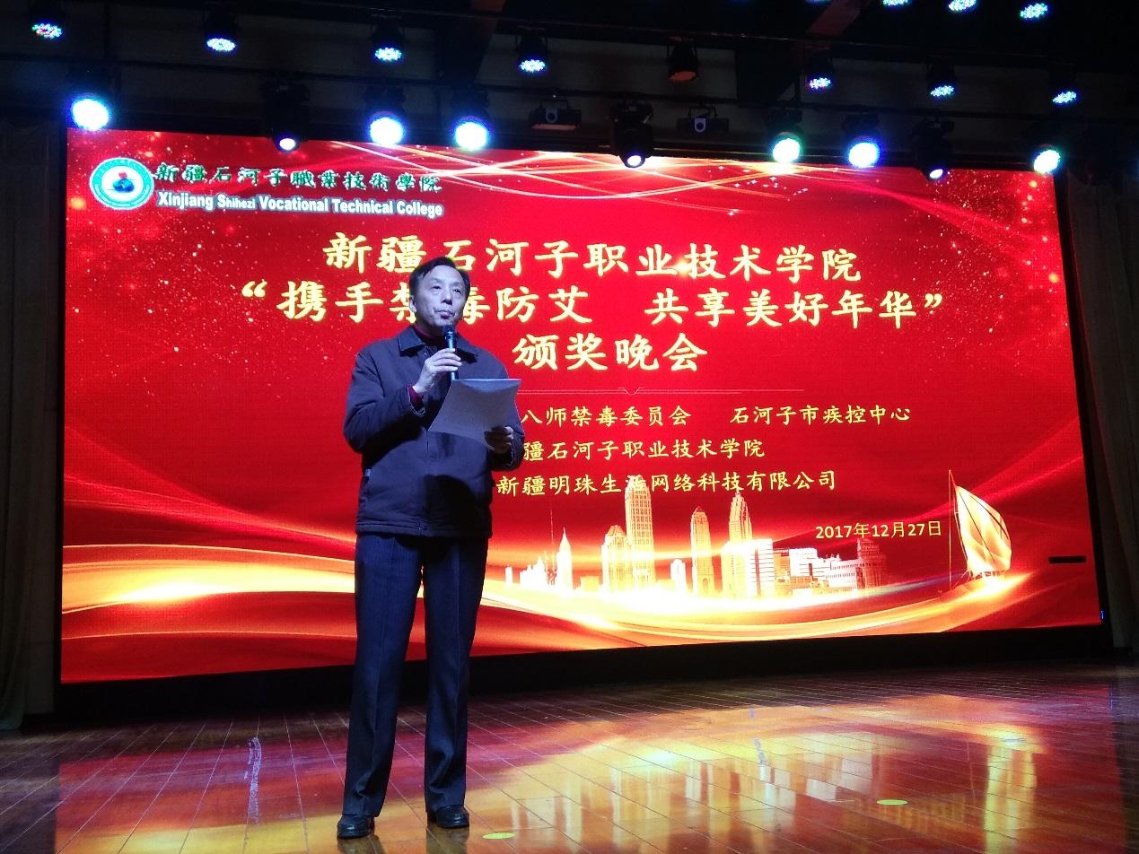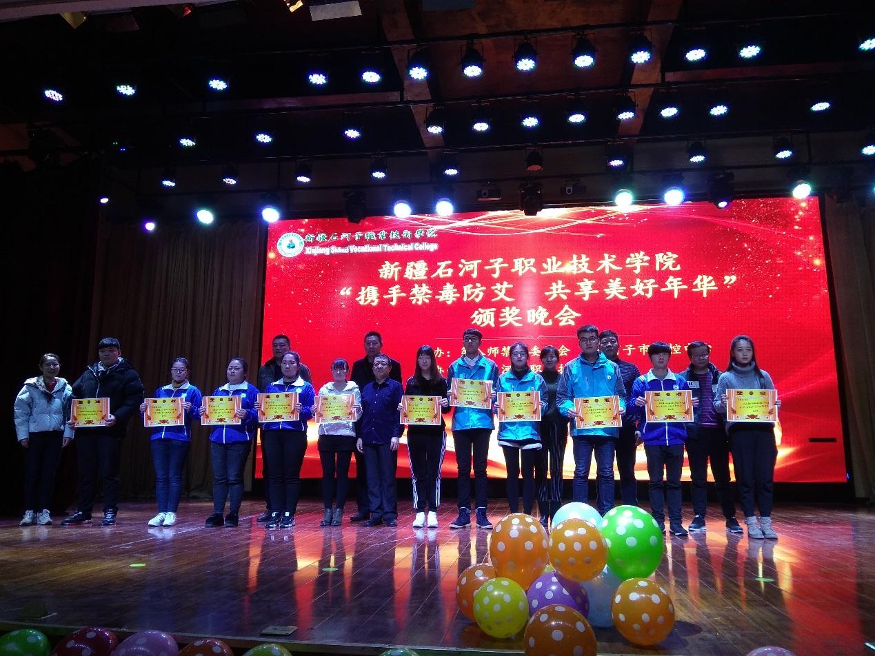 12月27日下午18:30,由第八师禁毒委员会、师市疾控中心主办,Beat365中文官方网站承办的“携手禁毒防艾 共享美好年华”颁奖晚会在学院多功能厅举行。